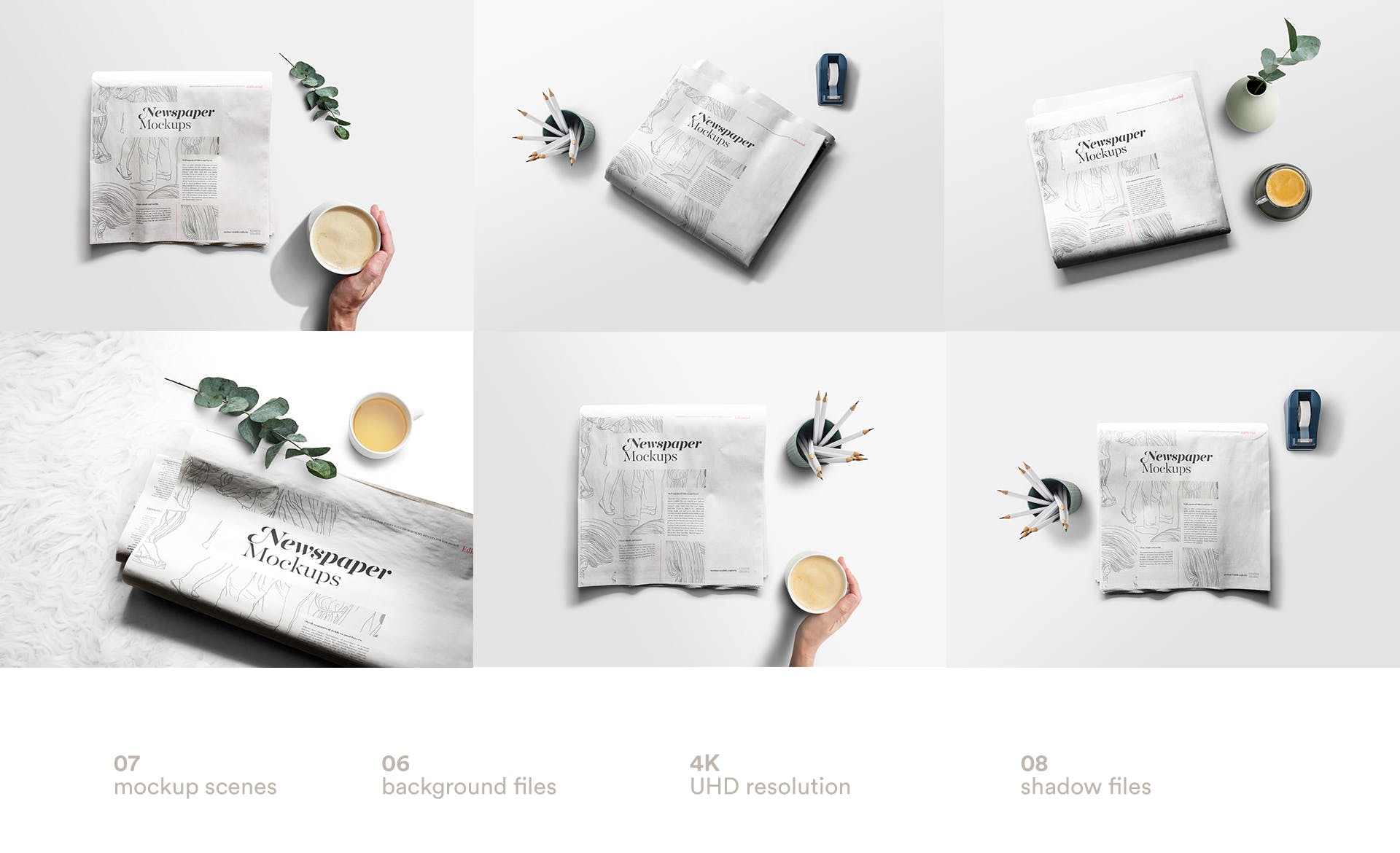 - 含有7张报纸的样机场景。