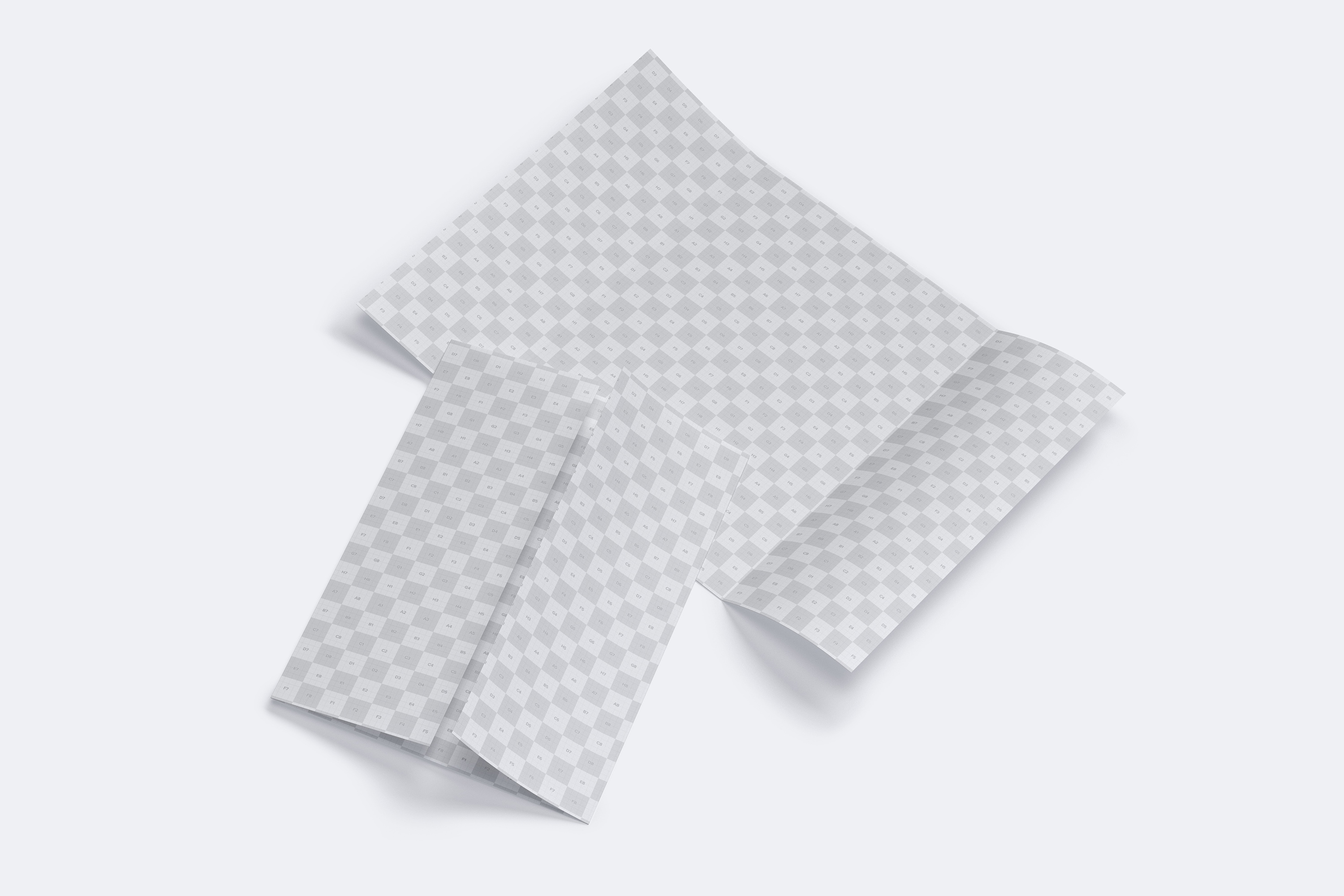 两个A4折页小册子透视图样机。 该演示文稿包含上述视图中的开放式和封闭式宣传册。 左侧和右侧尺寸相同,尺寸为74,25mm,中间侧较大,尺寸为148.5mm。这个PSD样机使用Blueprint&Play技术,可以帮助您进行简单的自定义。 隔离特性使您可以在不影响阴影的情况下操纵不同背景的对象。