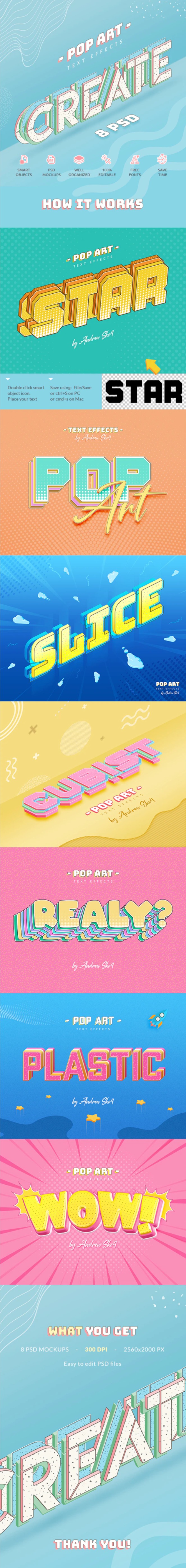 为您的文本、徽标、形状、像素层设计而创建的切片波普艺术文本效果。适用于任何类型的图层-矢量或栅格!短短几秒钟即可获得酷炫的刻字风格。您只需要将文本放入智能对象即可。使用此模板可以创建精美的海报、传单、Facebook封面、YouTube封面、CD封面、书籍封面、邀请函、明信片和T恤印花等。