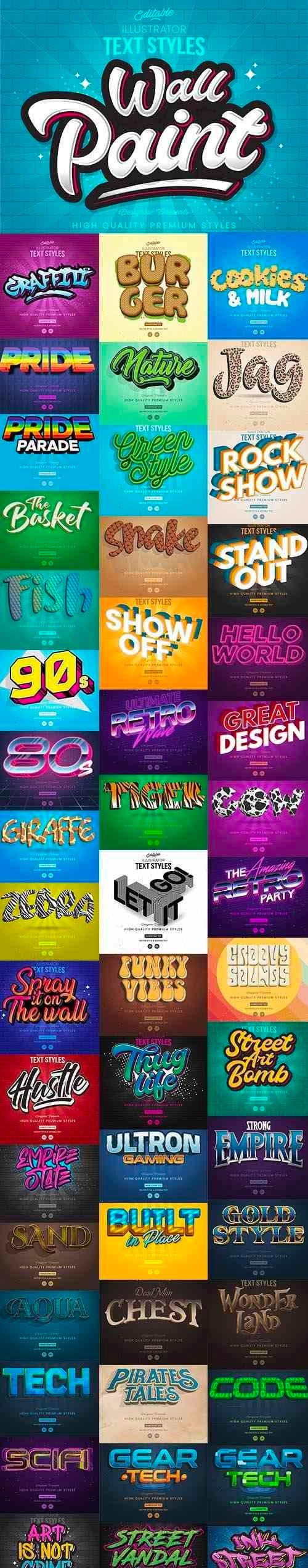 这次分享的是,50个不同的AI特效字体样式下载(EPS),可以帮助您快速在AI中设计各种漂亮的个性的标题字体,enjoy!