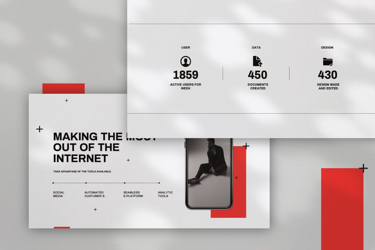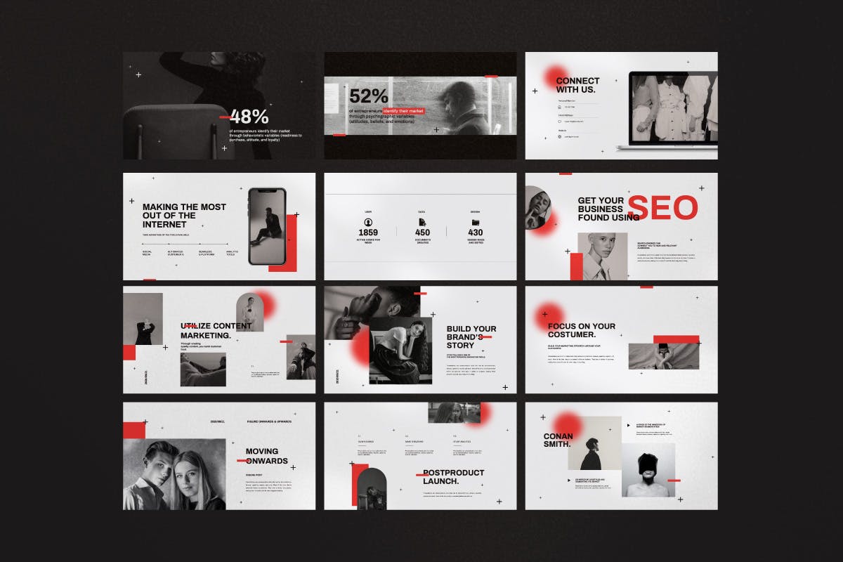 这次老不湿分享的是,时尚高端简约多用途高品质社交媒体风格powerpoint幻灯片演示模板(pptx),易于更改颜色,完全可编辑的文本,照片,形状和其他元素。