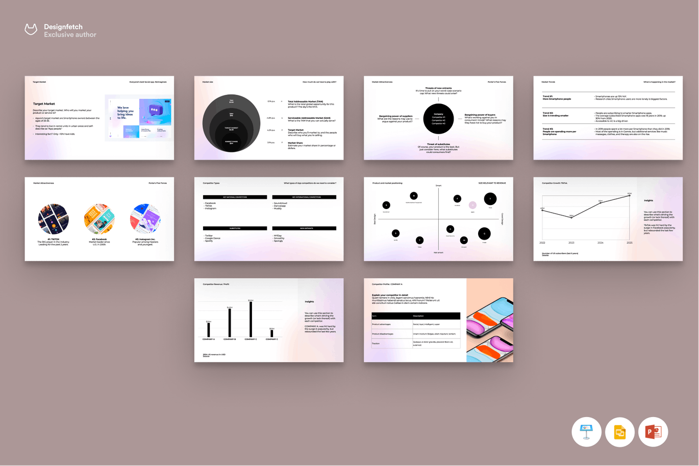 **此竞争对手分析模板只包含您需要的幻灯片**