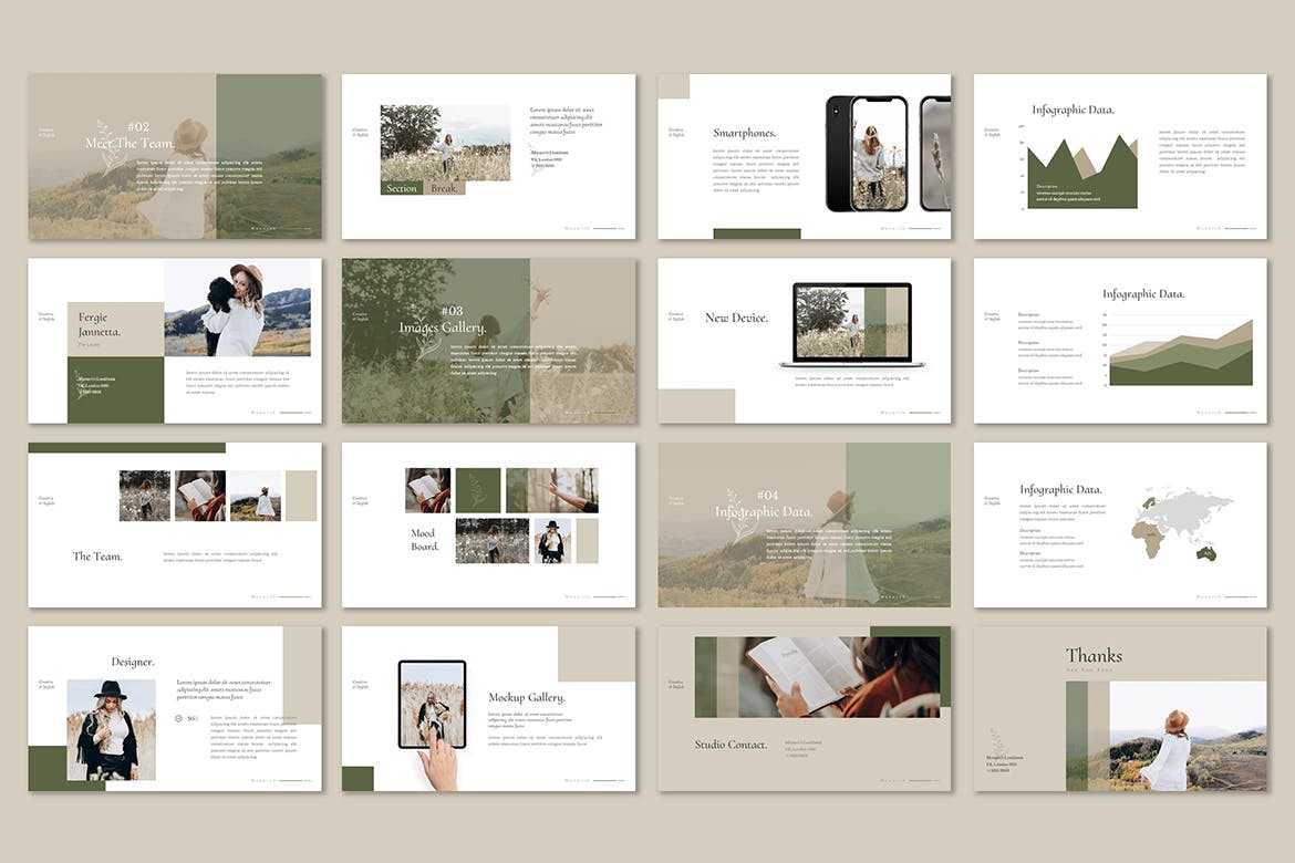这次分享的是,小清新时尚优雅摄影写真作品集PPT模板(Google),只需在Google幻灯片,主题幻灯片,Powerpoint幻灯片上进行编辑即可内容,将您的图片替换为占位符,更改颜色,然后,所有演示都包括一个动画幻灯片