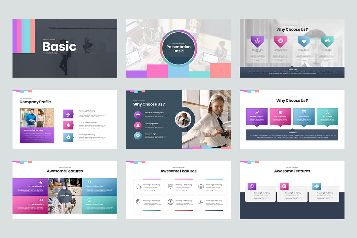 **基本的Powerpoint演示文稿**非常适合您令人印象深刻的风格演示文稿,也可以灵活地用于公司和业务演示。这个演示模板,干净,有创意,简单,独特,可伸缩。模板所有元素都很容易编辑和定制,以满足您的需要。