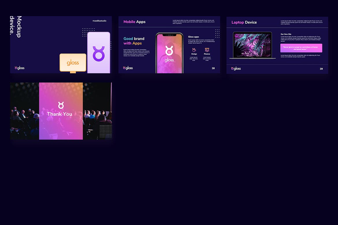 **光泽-深色品牌和风格指南Powerpoint模板**具有专业、超现代和独特的设计,每张幻灯片都是以热爱和关注细节的方式制作的。