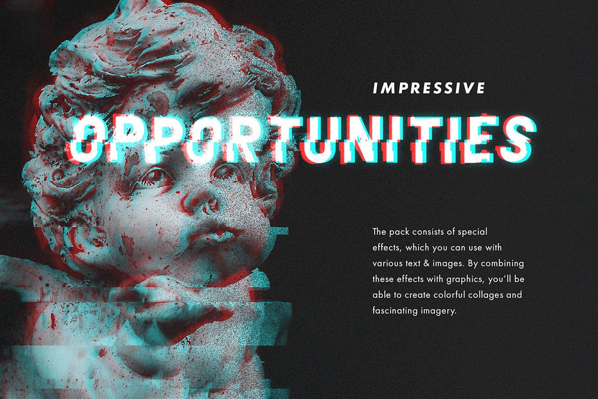 观察13种照片效果和6种文字效果的美感,将任何可使用的东西切换为小故障。任何图形都可以在几秒钟内获得艺术性的“崩溃”外观,从它们仍保留在某个地方的这些复古游戏场所中散发出8位街机游戏机的震动。但是您知道什么会使字词出现毛刺吗?的3个动画失真效应,奇迹般地转弯静态图像转换为实时运动之一。使用效果非常简单,但其中也包含一些简短的说明和视频教程。继续为您的广告,横幅,邀请,封面以及您可以想到的所有其他艺术形式产生故障效果。
