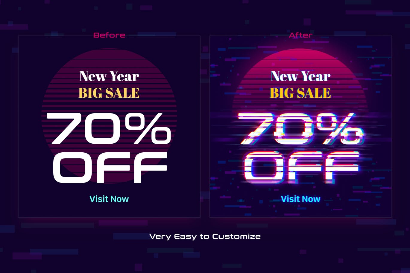 这次老不湿分享的是,时尚绚丽抖音风格的小故障Photoshop文字效果图层样式,只需简单地编辑智能对象并将其替换为您自己的文本,字体,形状或照片即可。
