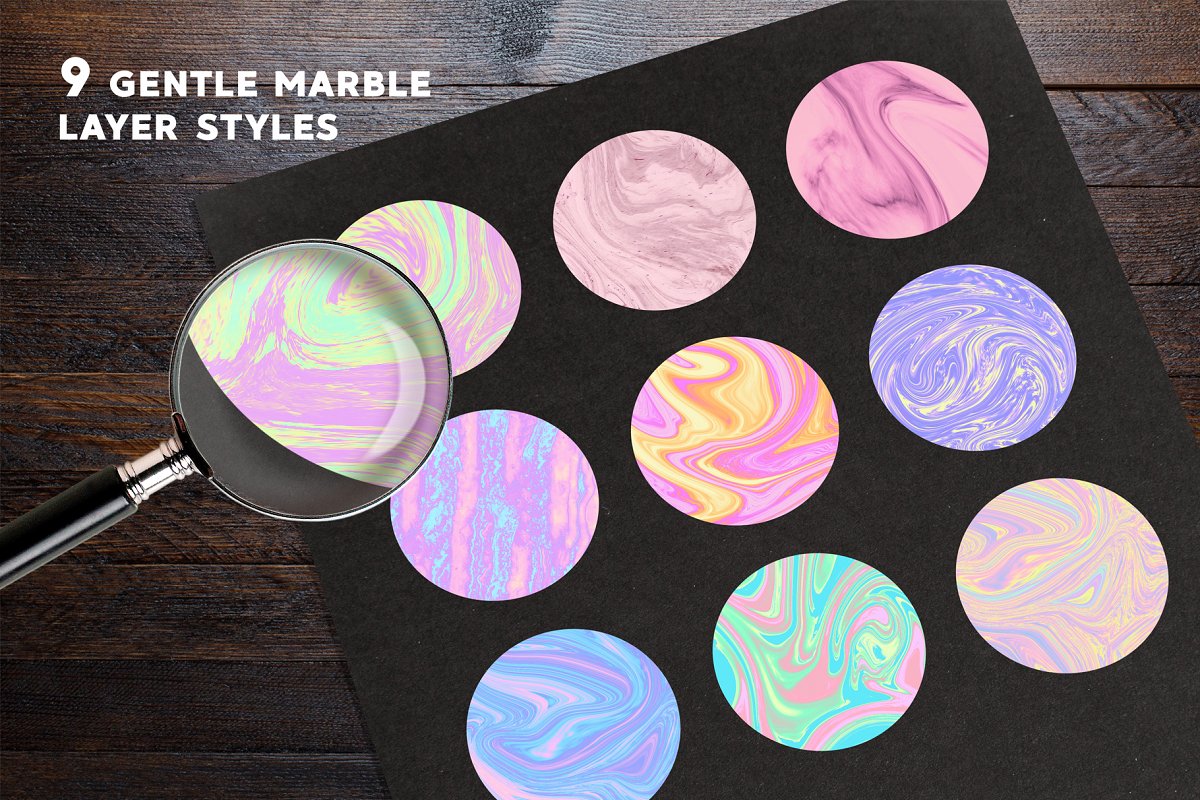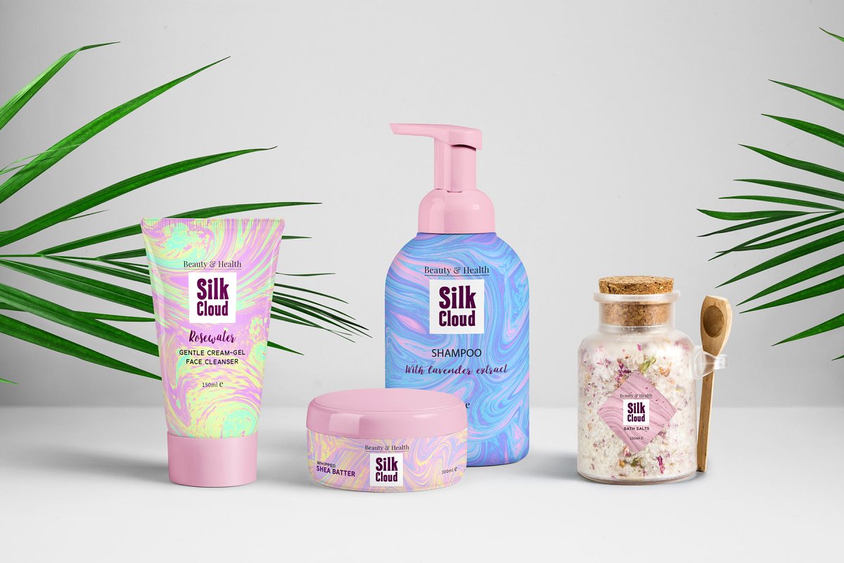 在这套装中,您将获得生动和柔和的大理石或液体颜色样式。使用此套装,您可以为海报、杂志、明信片、名片、邀请函或网页设计创建时尚的设计。在化妆品和其他产品的包装设计中使用这些样式。
