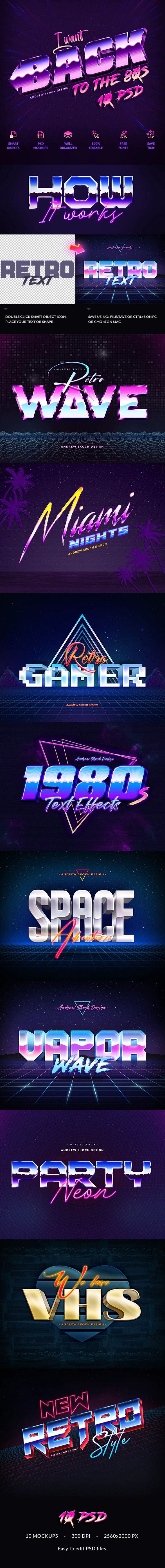 超级简单的可编辑模板。回到80年代!包含10个PSD文件,300 dpi,2560×2000 px。复古版式与明亮的光芒和波浪,反射铬。合成波、蒸气波、复古波和迈阿密风格。只需几秒钟即可从您的文本中获得复古的未来派图片,您只需要将文本放入智能对象即可。