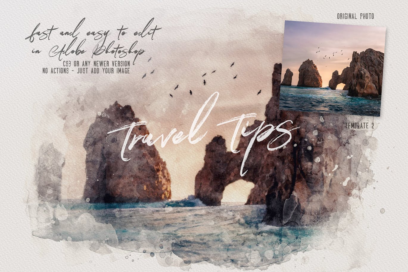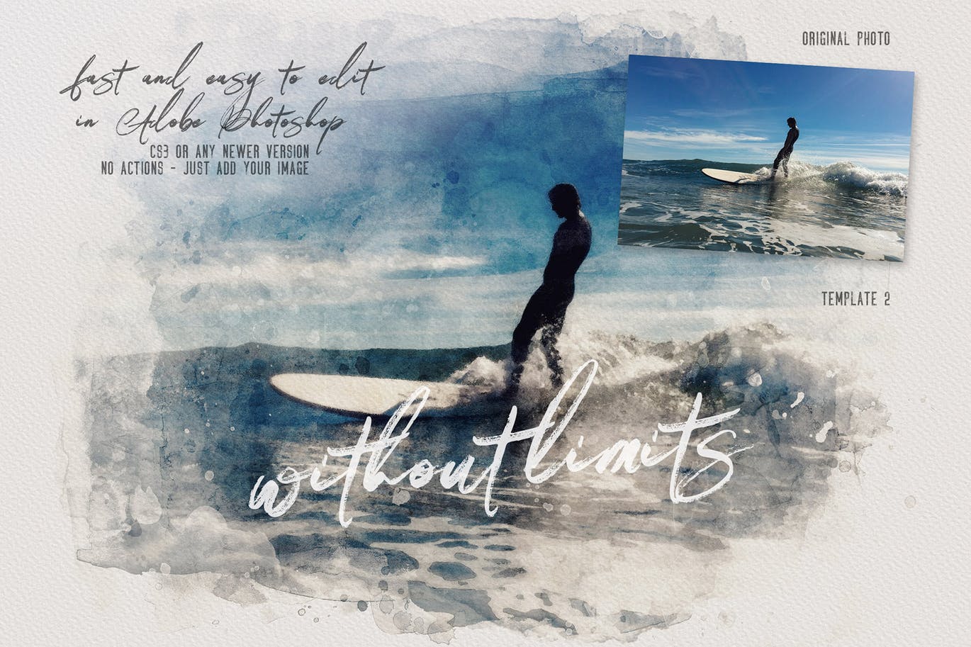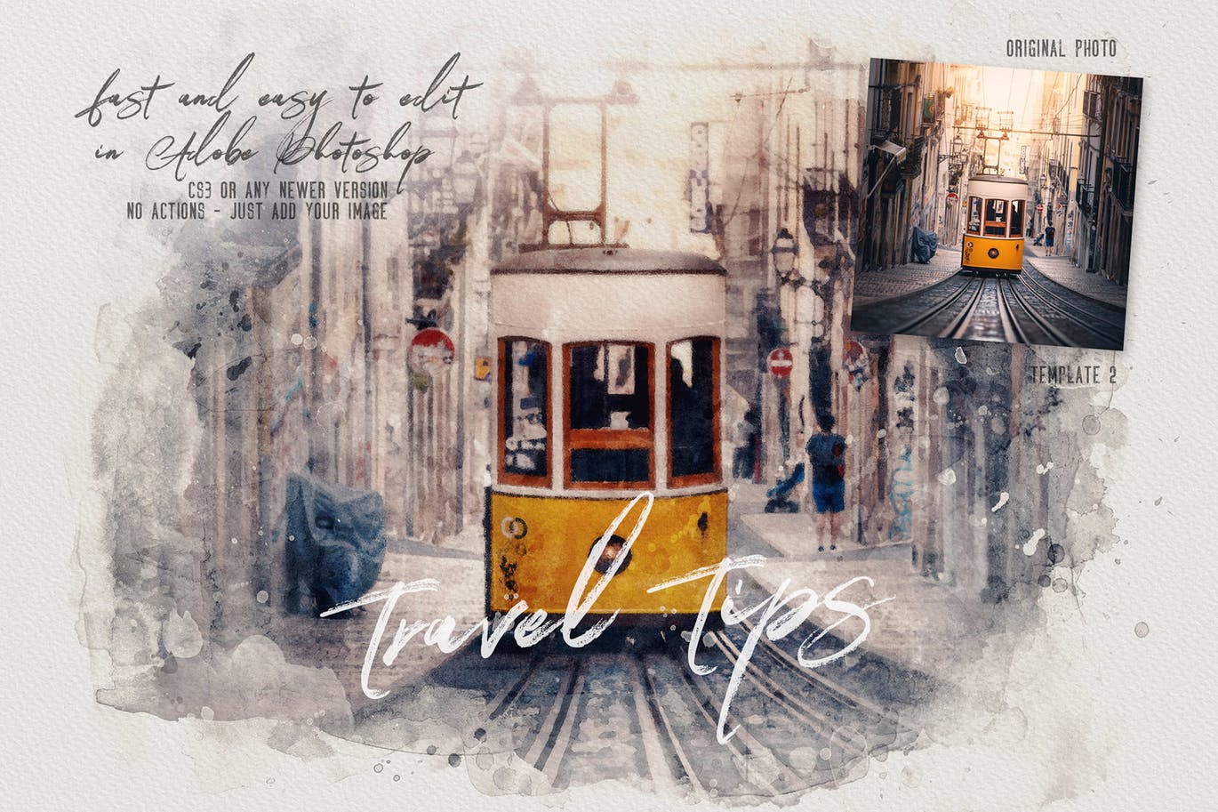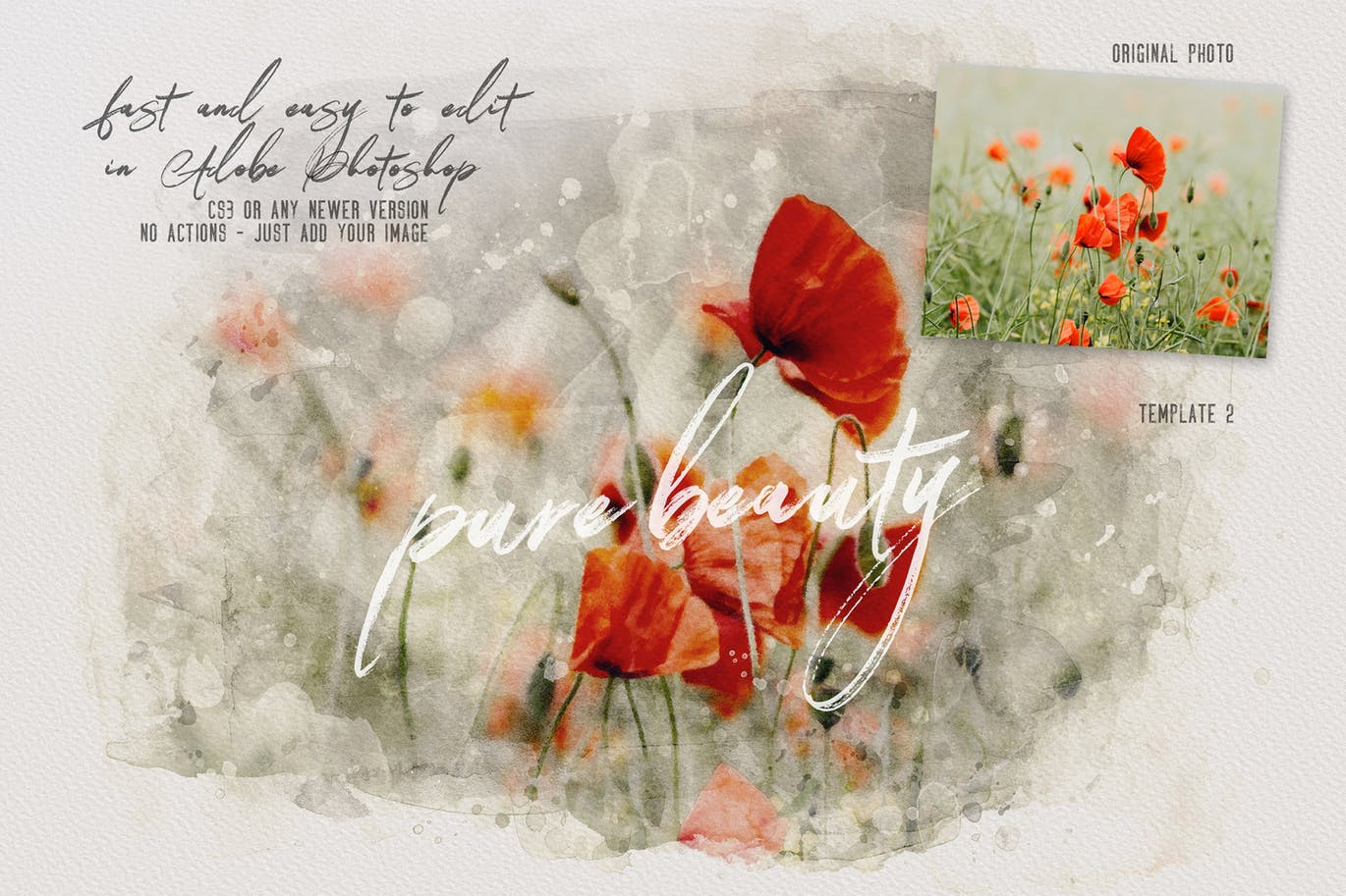 这次老不湿分享的是,高品质的手绘绘画水彩风格图层样式集合,超级创意和独特的水彩艺术创作者。如果您需要在几分钟内从照片创建原始水彩画,则需要检查此Photoshop模板;)