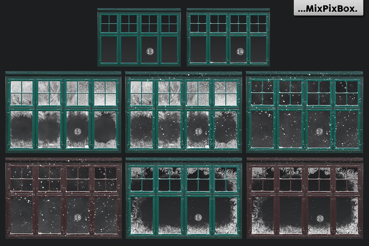 这些众多出色的设计非常适合作为照片或图片取景框。它们被冰或雪覆盖,装饰有微小或巨大的雪花,并呈现各种调色板。窗户上的冰霜为椭圆形、圆形、弯曲形、并具有精美的图案。通过使用这种出色的素材,发现适合您项目的完美相框,并将其轻松粘贴到照片中。