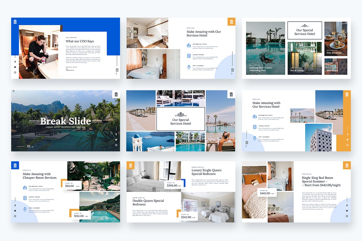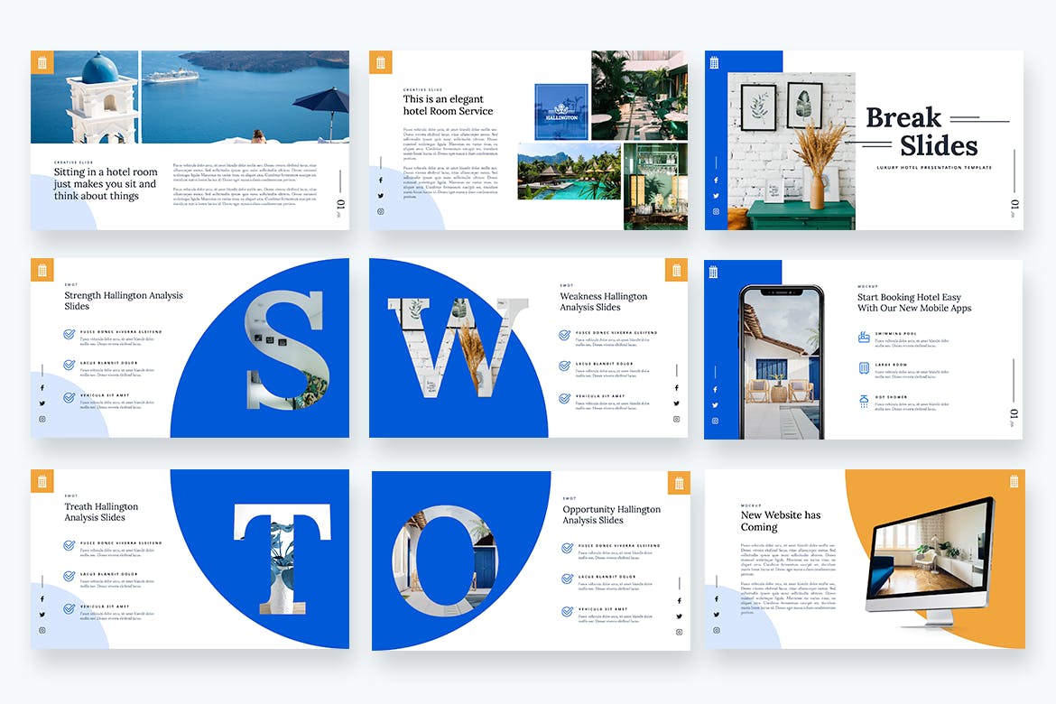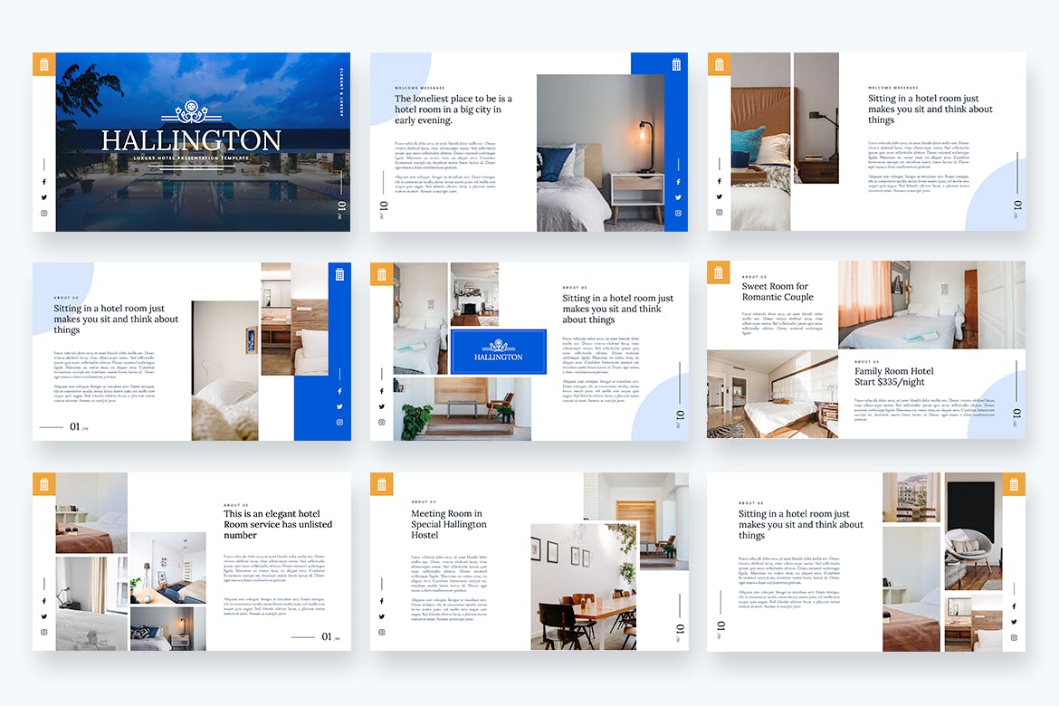 **哈灵顿-豪华酒店Powerpoint模板**是一个多用途的酒店Powerpoint模板,可用于任何类型的演示:商务、投资组合、企业、品牌、广告、最小、创意、酒店、旅行、客房、公寓、豪华、住宿、大堂、卧室、度假村、计划项目,也可用于定制制作。