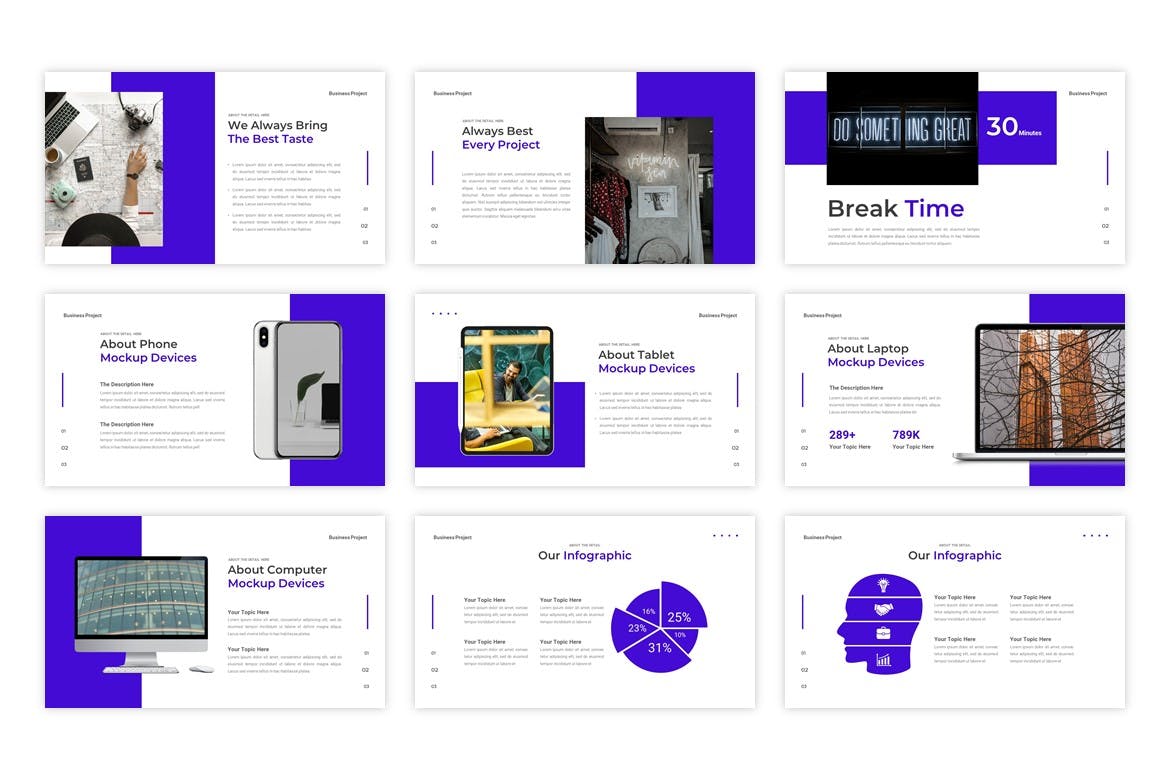 这次老不湿分享的是,简约优雅时尚高端多用途大数据powerpoint幻灯片演示模板(pptx),30个创意,清洁,简单和幻灯片的多功能幻灯片,500+矢量图标,高清16:9宽屏幻灯片格式(1920 x 1080像素)。