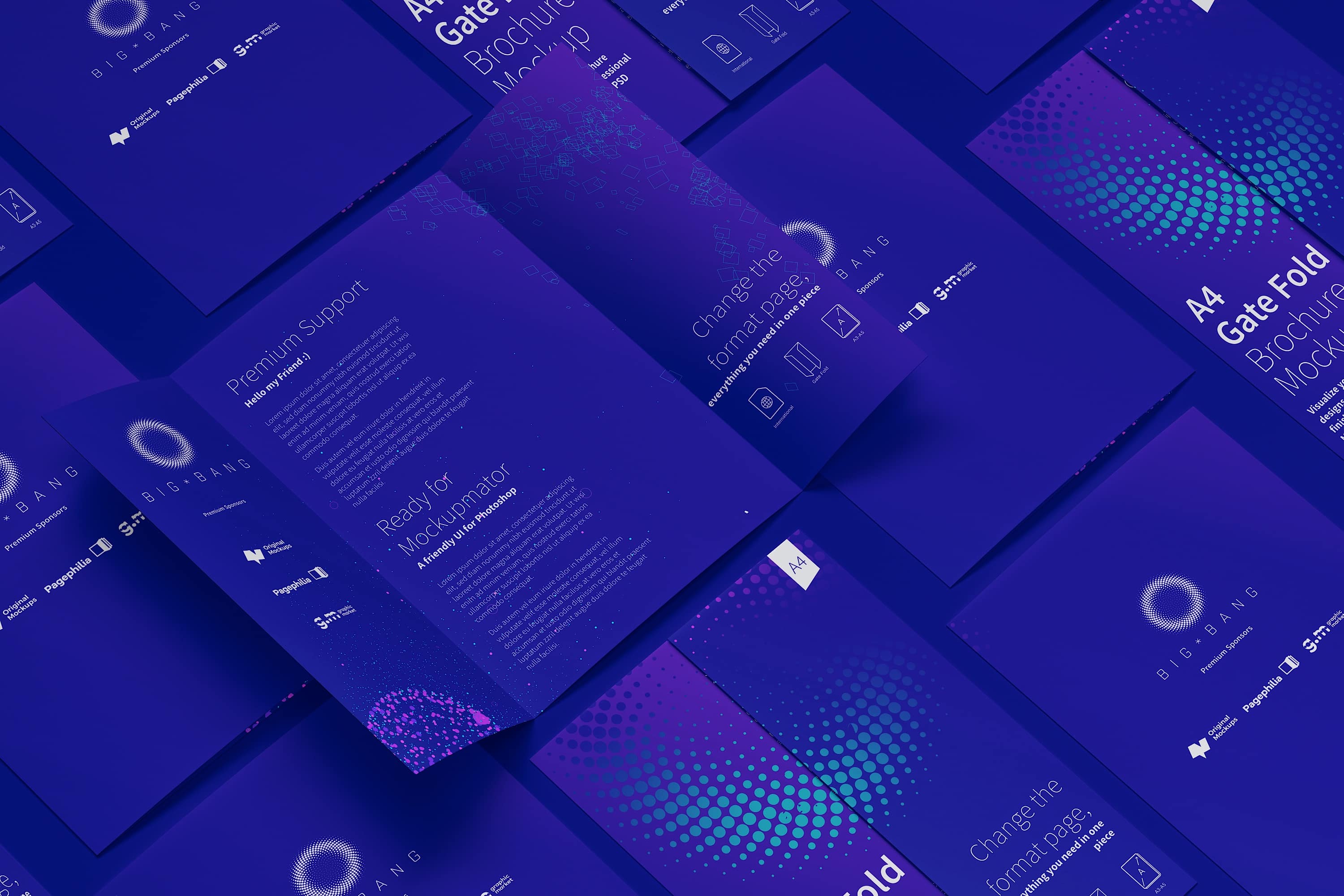 这是一组具有不同视角的A4折叠式宣传册模板,在内外两侧可以分别打开和关闭。