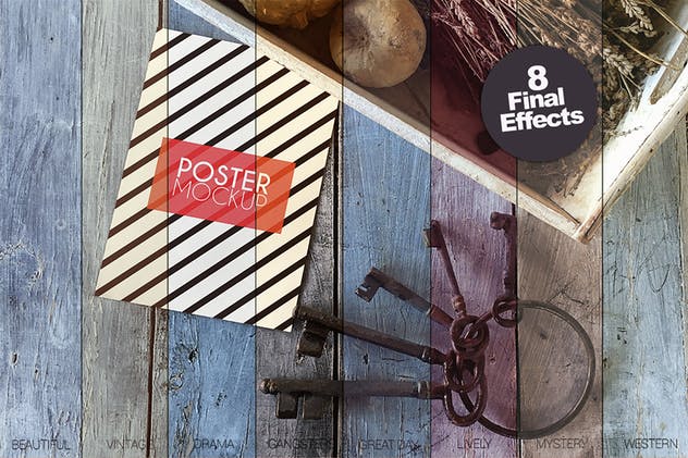 高分辨率的专业照片拍摄样机。这个海报样机非常适合在照片般逼真的外观中呈现您的艺术、素描、插图等。具有智能对象功能,它采用分层Photoshop格式,易于使用。这个样机还提供了8个最终过滤器,您可以选择适合您的风格。