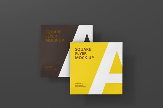 7个用于印刷设计、组合、橱窗、广告、banner等的方形传单的逼真高品质样机。