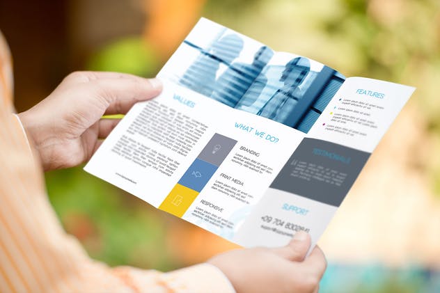 优质的传单样机与聚焦视图,集中展示您的广告设计特写镜头。这些样机提供具有真实环境背景的双折页和三折页传单。您可以使用智能对象选项轻松替换传单的设计。