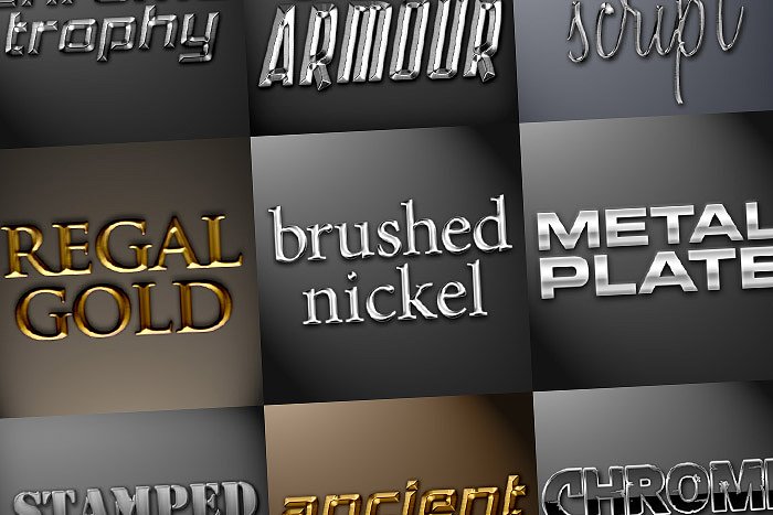 这个Photoshop风格的金属包包含9种金属风格,从反光的铬到现实的拉丝镍。每种样式都针对4种不同的文本大小进行了优化,因此您不必手动调整它们的大小。只需点击4种不同的预设,直到你找到最好的。还包括用于创建每个预览图像的PSD示例文件。