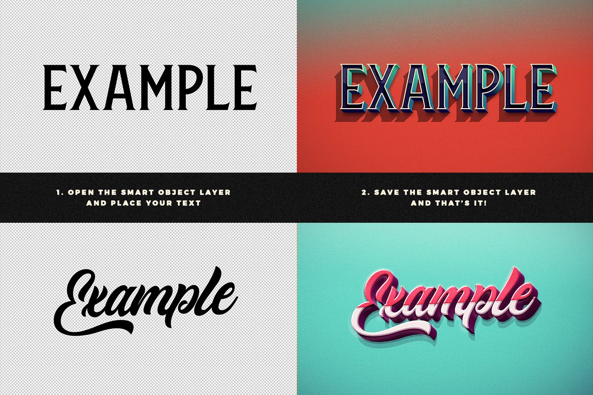 40个PSD文件,每个文件都带有酷炫的复古文本效果