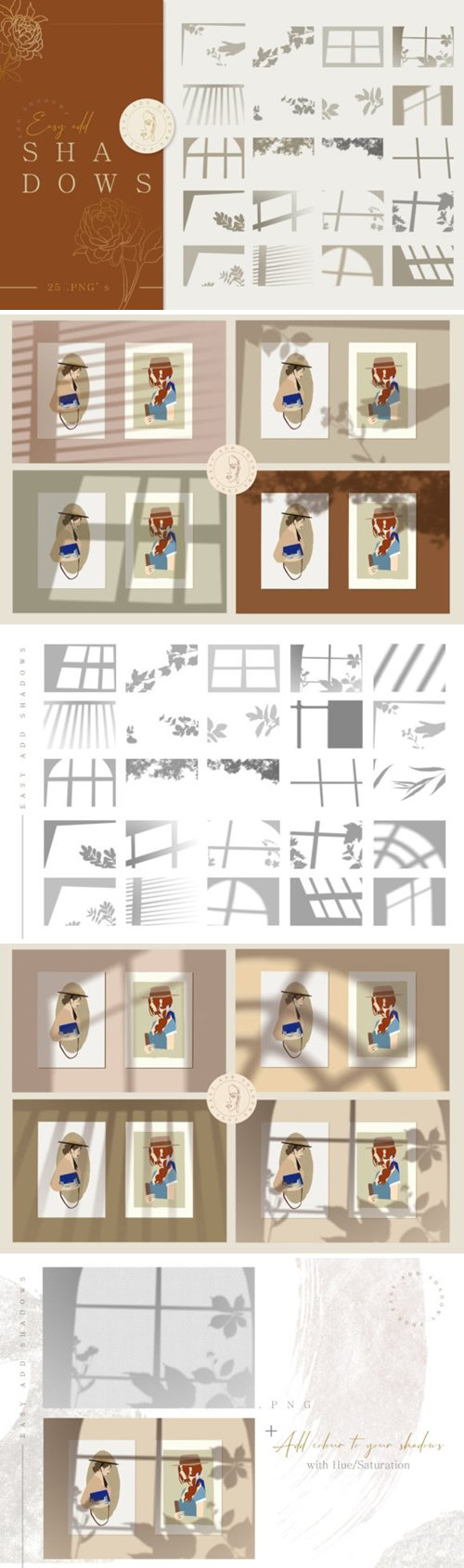 25个轻松添加的阴影,时尚的照片叠层。非常适合在演示文稿中添加个人风格,或者仅是社交媒体照片的有趣叠加。在这组文件中,有25个高分辨率的300dpi(6000×4000 px)透明PNG文件,您可以使用它们轻松添加到项目中。