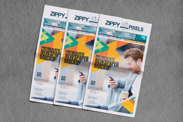 使用提供6种不同PSD的报纸设计样机,为您的设计提供一些令人印象深刻的演示。所有样机都是完全分层的,并具有智能对象功能,允许您通过单击替换设计。这些样机根据您的需要提供整页报纸和半页报纸。