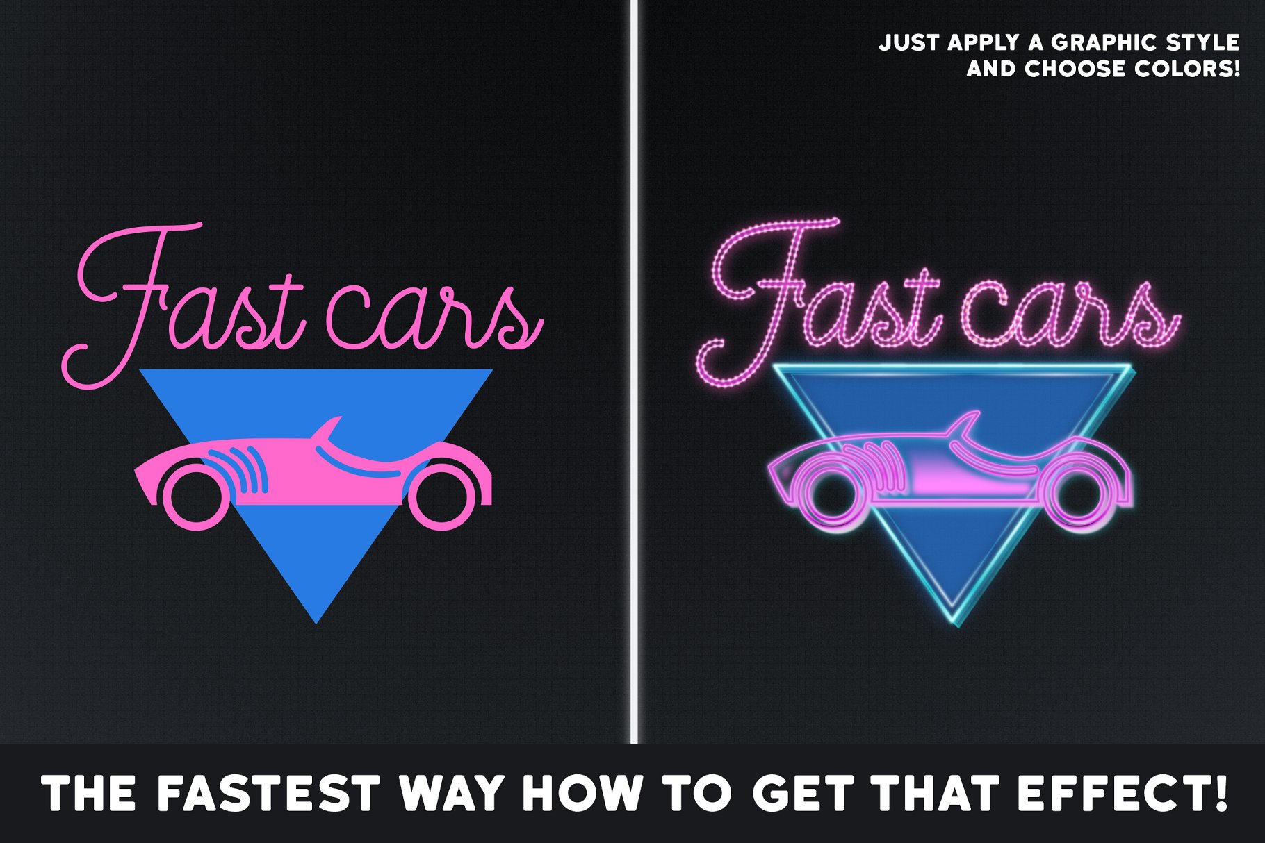 受拉斯维加斯灯光、老式汽车驶入标志和80年代图形的启发,设计了这些强大的图形风格。 您可以轻松地创建荧光文本标题和自定义颜色。