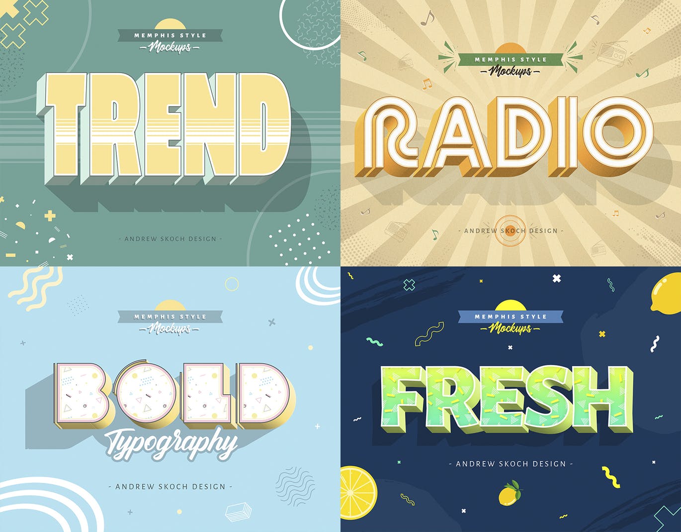 这次老不湿分享的是,时尚高端少见的3D立体流行新孟菲斯风格图层样式文字效果集合,如果你喜欢毫不掩饰的傲慢和大胆的色彩和图案,你会很高兴听到孟菲斯风格,这是20世纪80年代孟菲斯集团开创的设计风格,非常流行。