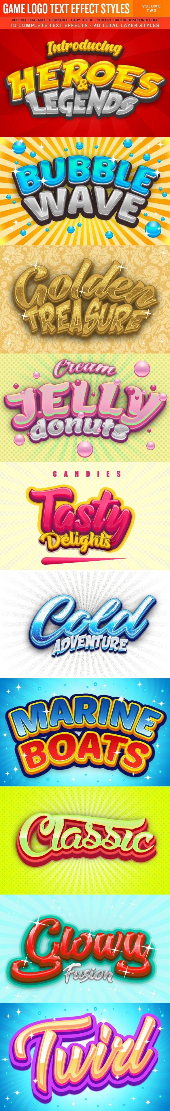 10个预支的游戏logo标题文字效果,共包含20种Photoshop图层样式。完全可编辑和可扩展的photoshop图层样式,包括矢量元素和背景,与预览中的完全相同。可以调整背景大小以满足您的需求。使用文本工具可以轻松编辑文本。300 DPI。包含免费字体链接。