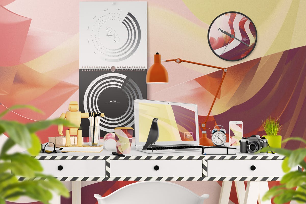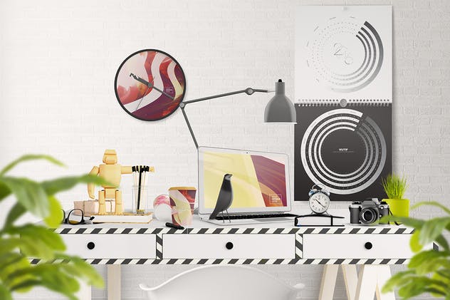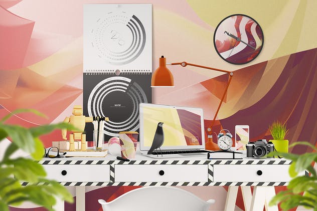 高品质的办公挂历样机生成器适用于标题图像,Etsy演示文稿,挂历样机等。分层透明阴影。所有阴影都在单独且透明的图层中,允许您调整其对比度以获得更好的效果。