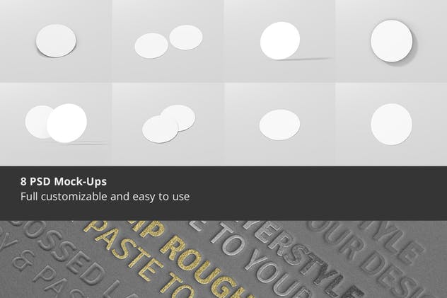 8个真实感高品质企业品牌迷你圆圈传单psd样机,适用于打印设计、投资组合、展示、广告、横幅等。使用有组织的图层轻松完全自定义。