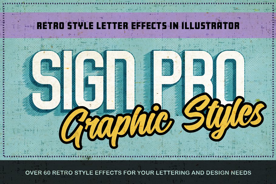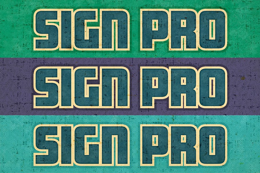 Sign Pro复古矢量文本图层样式合集,可以通过简单的普通文本,并通过一次点击将其变成专业的高品质字母和标牌效果。超过60种可定制的简单易用选项可提供无数的解决方案,以个性化您的项目匹配。