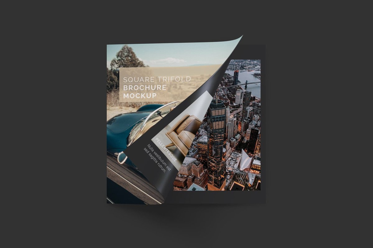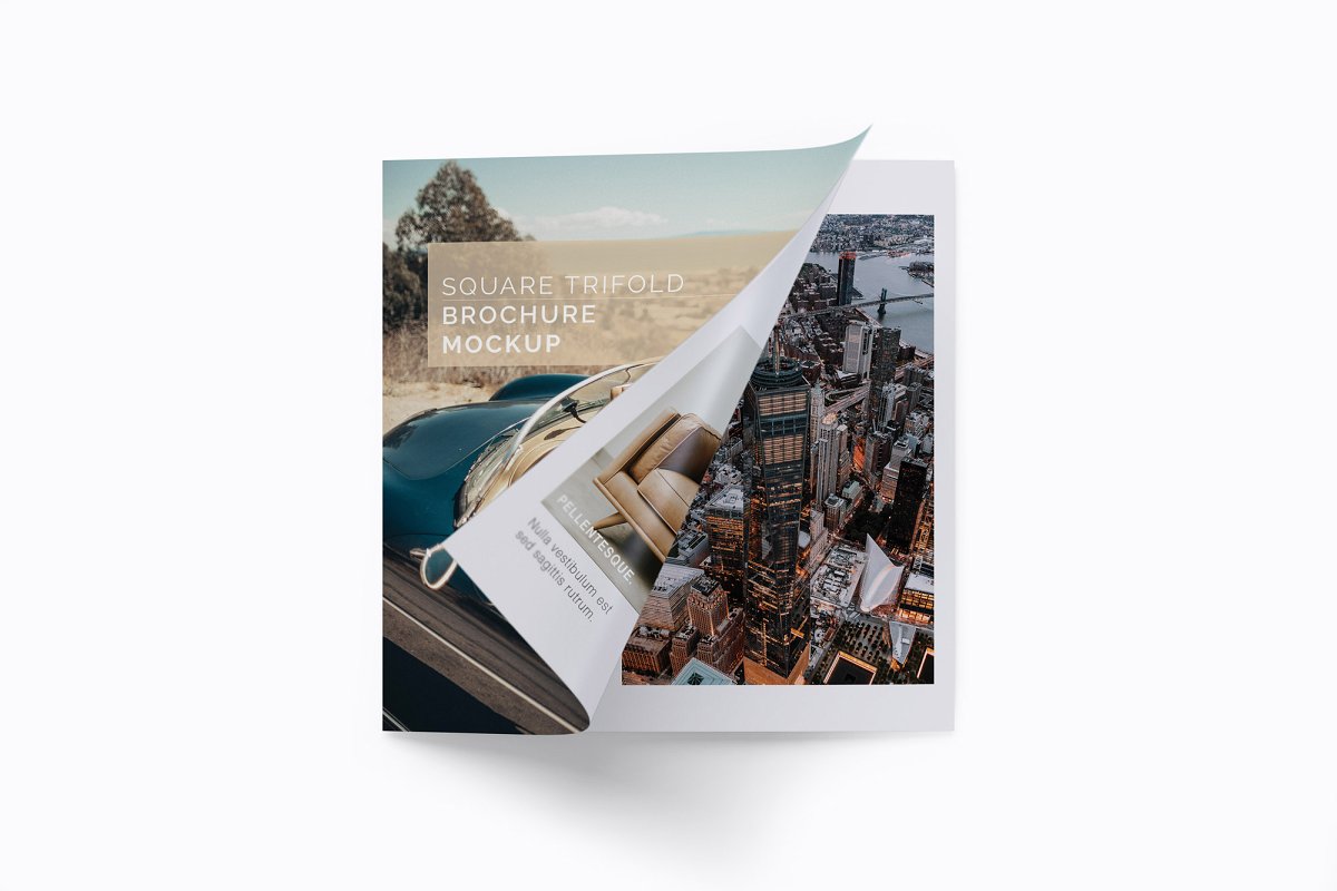 一个美丽的方形三折页宣传册样机。只需使用Photoshop并按照“帮助指南”图层中的说明进行操作,非常简单,只需几秒钟就能演示文稿。您还可以轻松更改背景颜色或增加阴影和亮度的不透明度。
