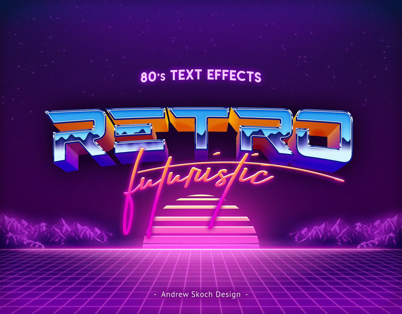 这次老不湿分享的是,高品质的时尚绚丽高端80年代复古3D立体文字效果图层样式vol.2,使用此文字效果创建酷复古海报,传单,Facebook封面,youtube封面,CD封面,书籍封面,邀请,明信片等。您只需将它们替换为您喜欢的风格包括的智能对象。