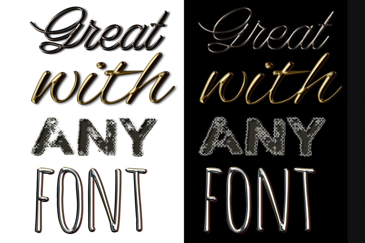 这次老不湿分享的是,33种金属质感Photoshop图层样式大集合,6个分层Psd文件,5个预制文字效果+带有演示文稿的分层Psd *样式已经分为3组,适用于小型,大型和中型分辨率(但它们可以缩放到无限,像矢量)*这些Layer Fx在设计传单,视频游戏,海报和制作醒目的印刷效果时很有用*它们非常易于使用,你不需要任何Photoshop技巧*兼容各种语言的Adobe Photoshop CS和CC + *附带提示和信息文件,附带说明。链接到文件中的演示文稿中使用的字体