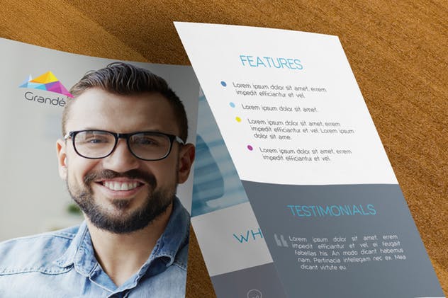 向他们展示这些吸引人的双折页广告传单,您的客户一定会喜欢您的设计。提供5种不同的姿势和款式,展示您的传单的内部和外部设计。这些模型还提供整洁的木质背景,也可以被任何其他设计所取代。此外,您还可以调整样机的阴影和效果。