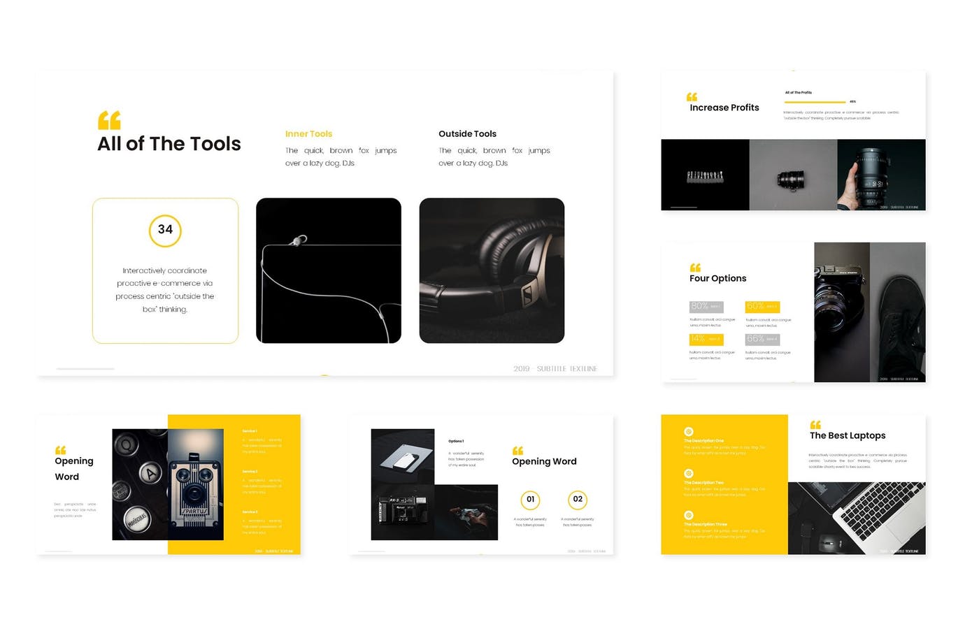 这次老不湿分享的是,简约好用的高品质专业powerpoint幻灯片演示模板(pptx),具有第5种预制的颜色变化立即获取, 小工具-Powerpoint模板是满足商务或个人需求的多功能演示模板。此模板中的所有元素都是使用Powerpoint制作的,只能使用Powerpoint进行编辑,插入内容,将图像替换为占位符,更改颜色,以及所有演示文稿(包括动画幻灯片),并将幻灯片展示给业务合作伙伴。