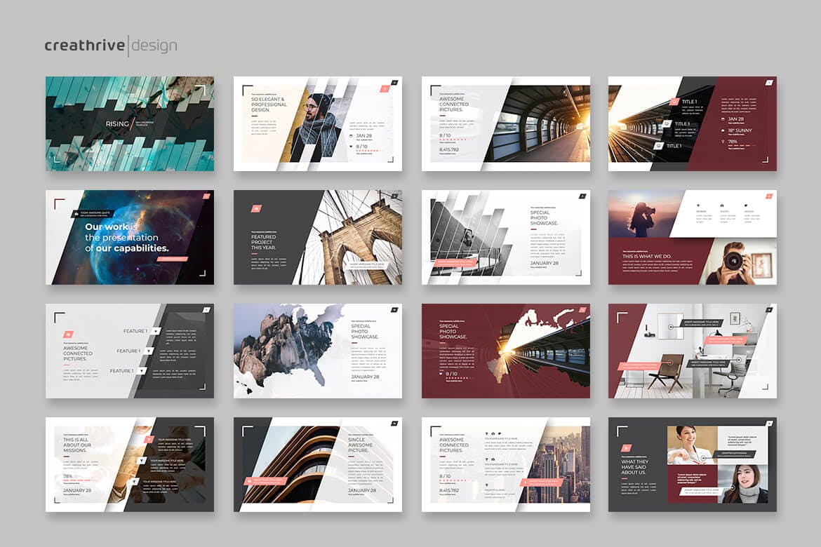 适合商业或个人使用的多用途专业演示文稿模板。此模板中的所有元素都是用PowerPoint制作的,只能用PowerPoint进行编辑,插入内容,将图像替换为占位符,并自豪地展示幻灯片!