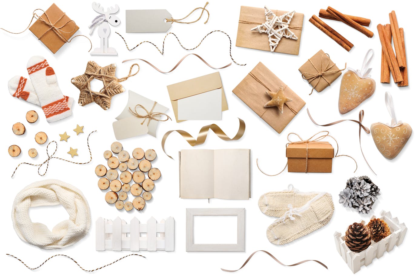 这次Taebin分享的是,时尚高端多用途的新年圣诞节元素VI样机展示模型底纹纹理背景字体大集合,圣诞节套装 – 照片叠加,刻字和书法,孤立的对象,照片背景 – 4个新的和最流行的剪贴画集合在一起!