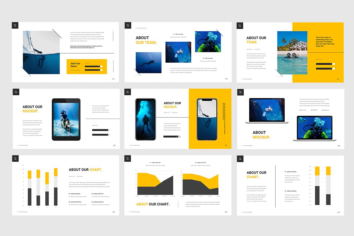 这次老不湿分享的是,清新简约海洋潜水风格powerpoint幻灯片演示模板(pptx),长宽比16:9。