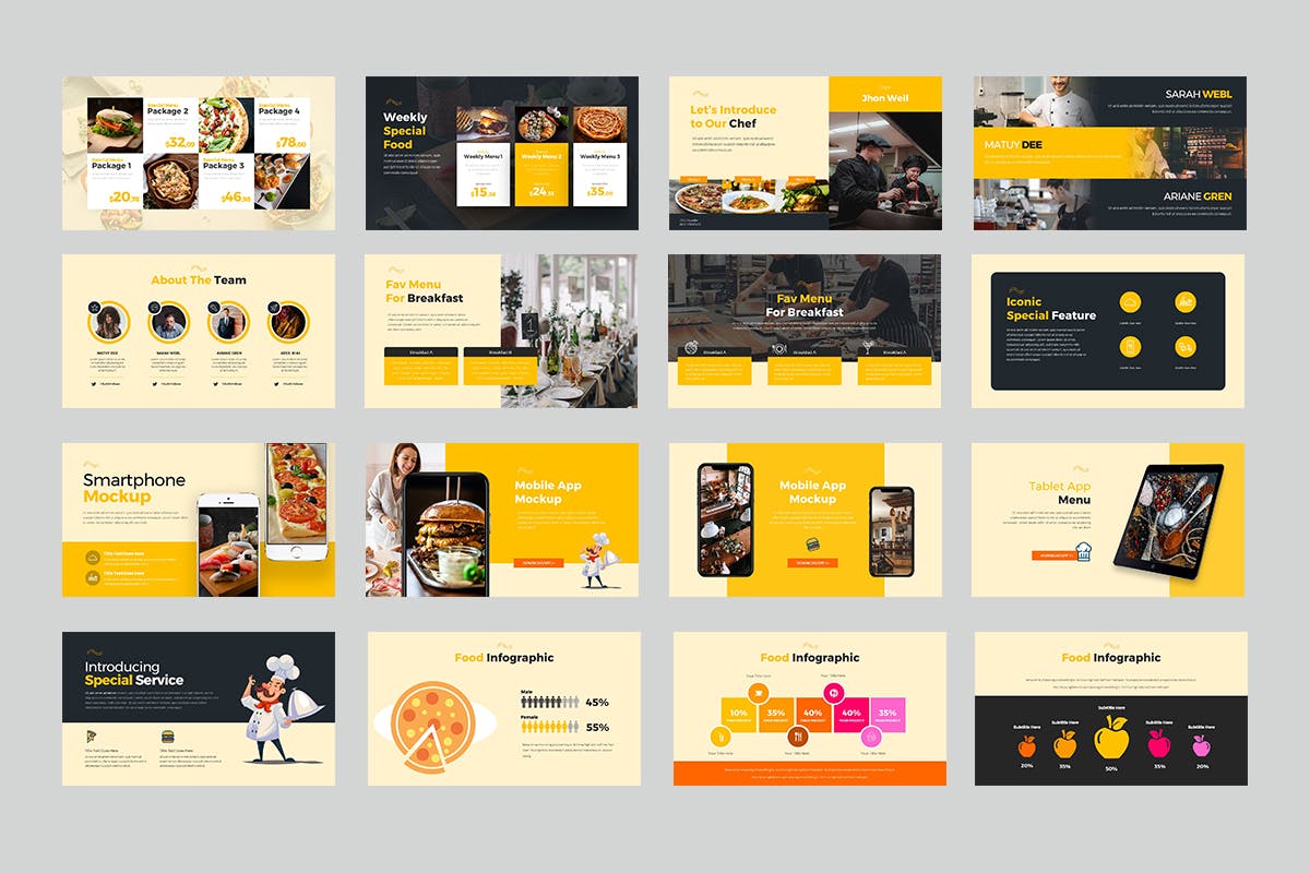 这次老不湿分享的是,时尚高端专业的餐饮powerpoint幻灯片演示模板(pptx),非常适合您印象深刻的样式演示文稿,并且可以灵活地用于公司和业务演示文稿。此演示模板,干净,创意,简单,独特,可扩展。模板所有元素都可以轻松编辑和自定义,以满足您的需求。
