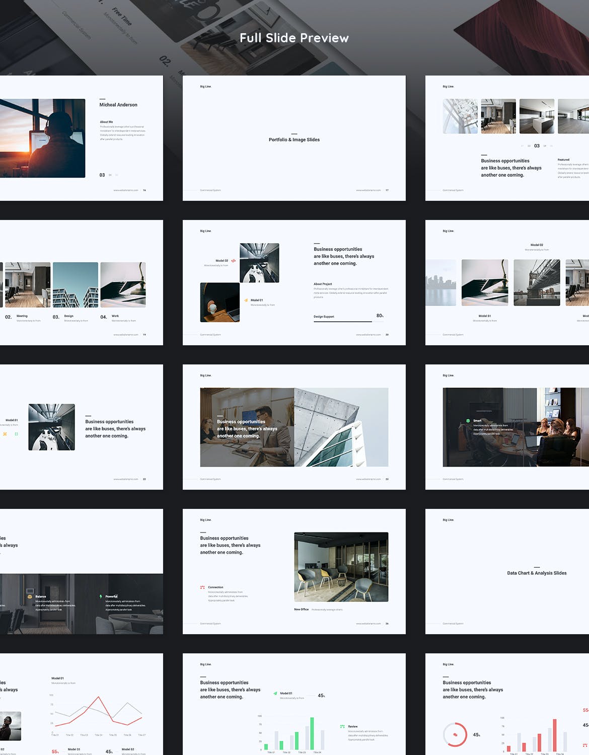 这次老不湿分享的是,时尚高端简约多用途大数据powerpoint幻灯片演示模板(pptx),该模板的主要目的是为用户提供具有创意,现代设计和解决方案的想法。换句话说,模板是一种“产品”,买方可以直接使用它,并且可以在没有模板作者的情况下流畅地表达自己的想法。