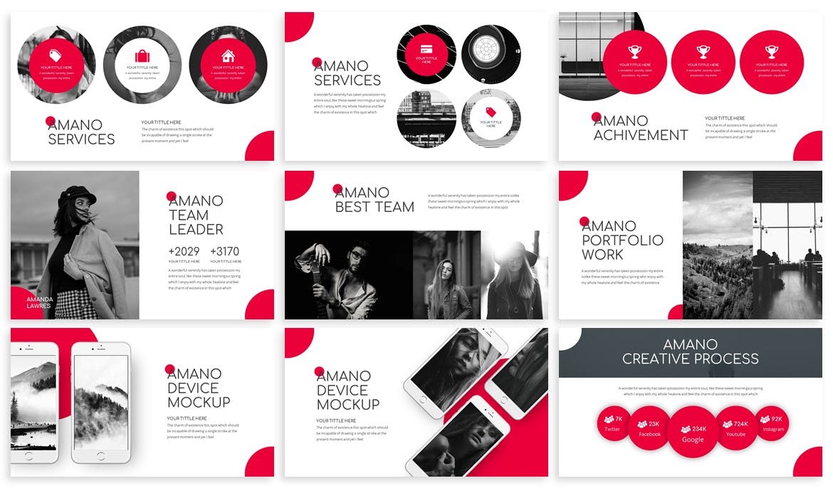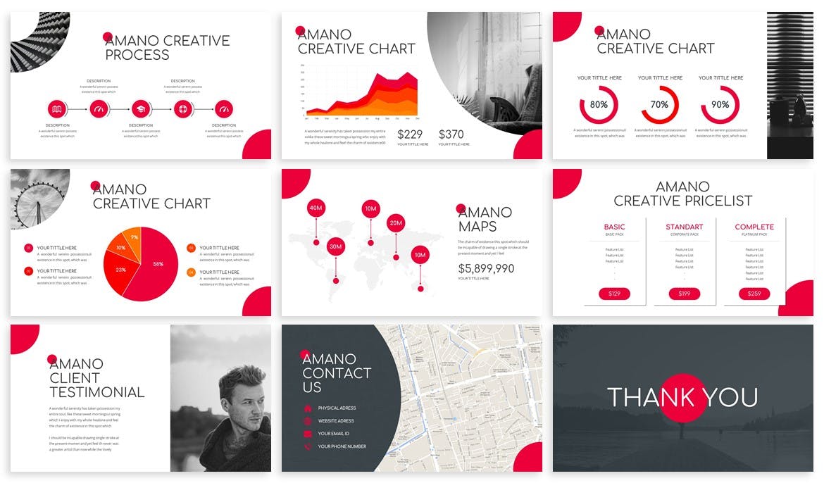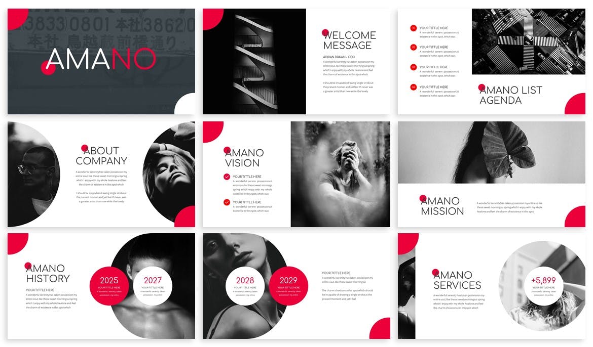 这是一个非常简单的Powerpoint模板,你可以用任何你想要的东西来编辑它。例如,这适用于建筑、时尚、创意代理等,所有元素从形状到颜色都是可编辑的。你不需要其他软件来编辑它,只需使用Powerpoint。
