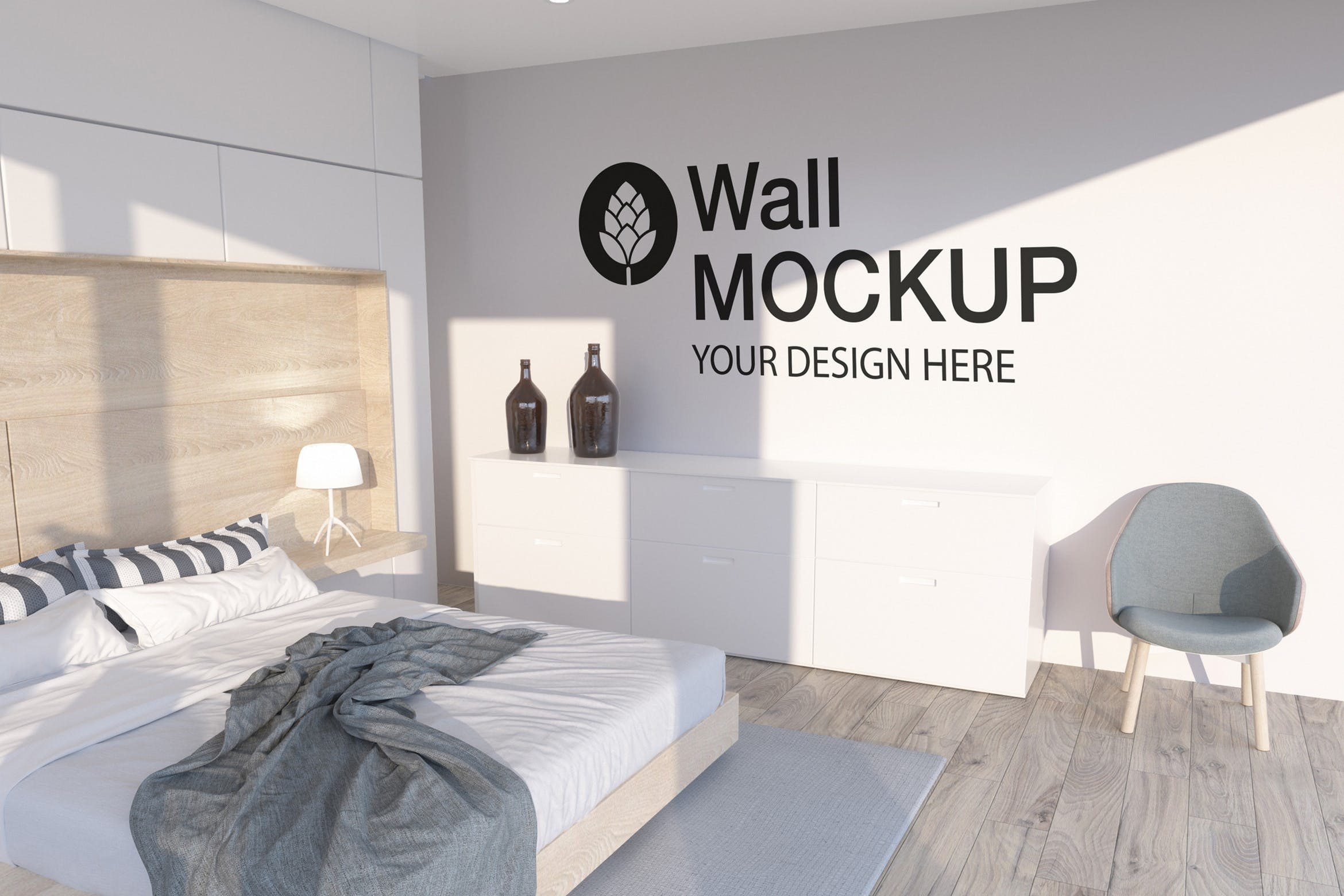 卧室室内墙体作品展示样机,高分辨率3500x3500px,可编辑智能对象,可编辑颜色,有组织和命名的层,完全可定制,分层PSD文件,300 PPI。