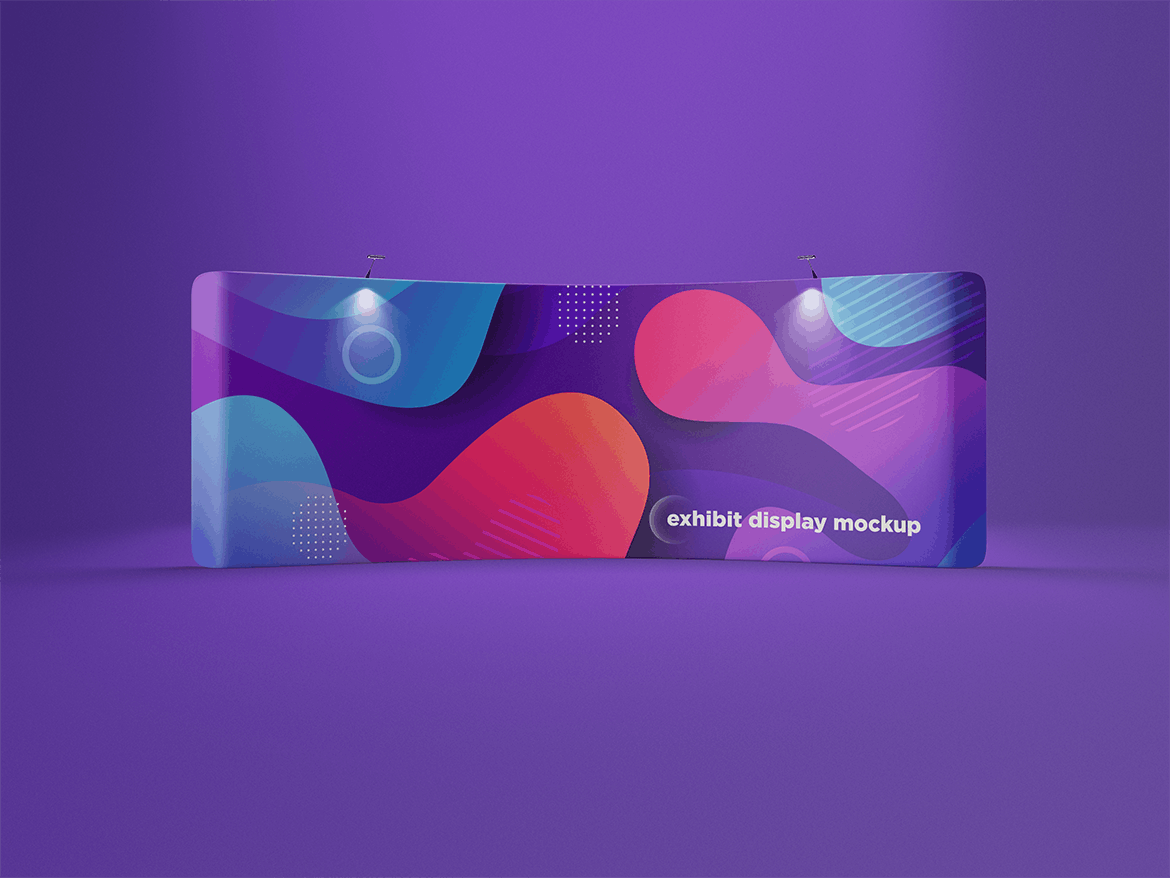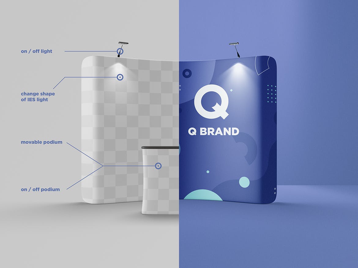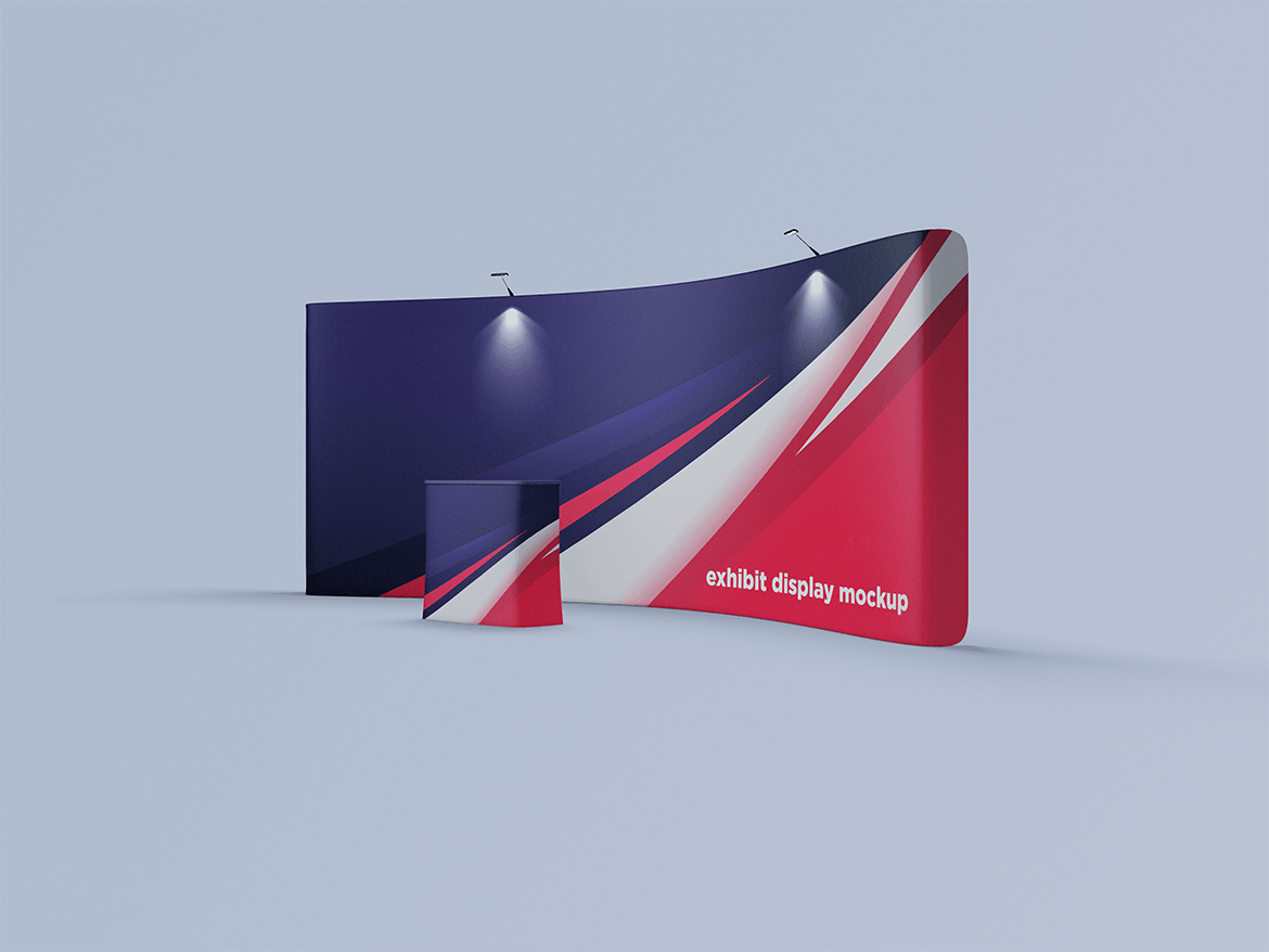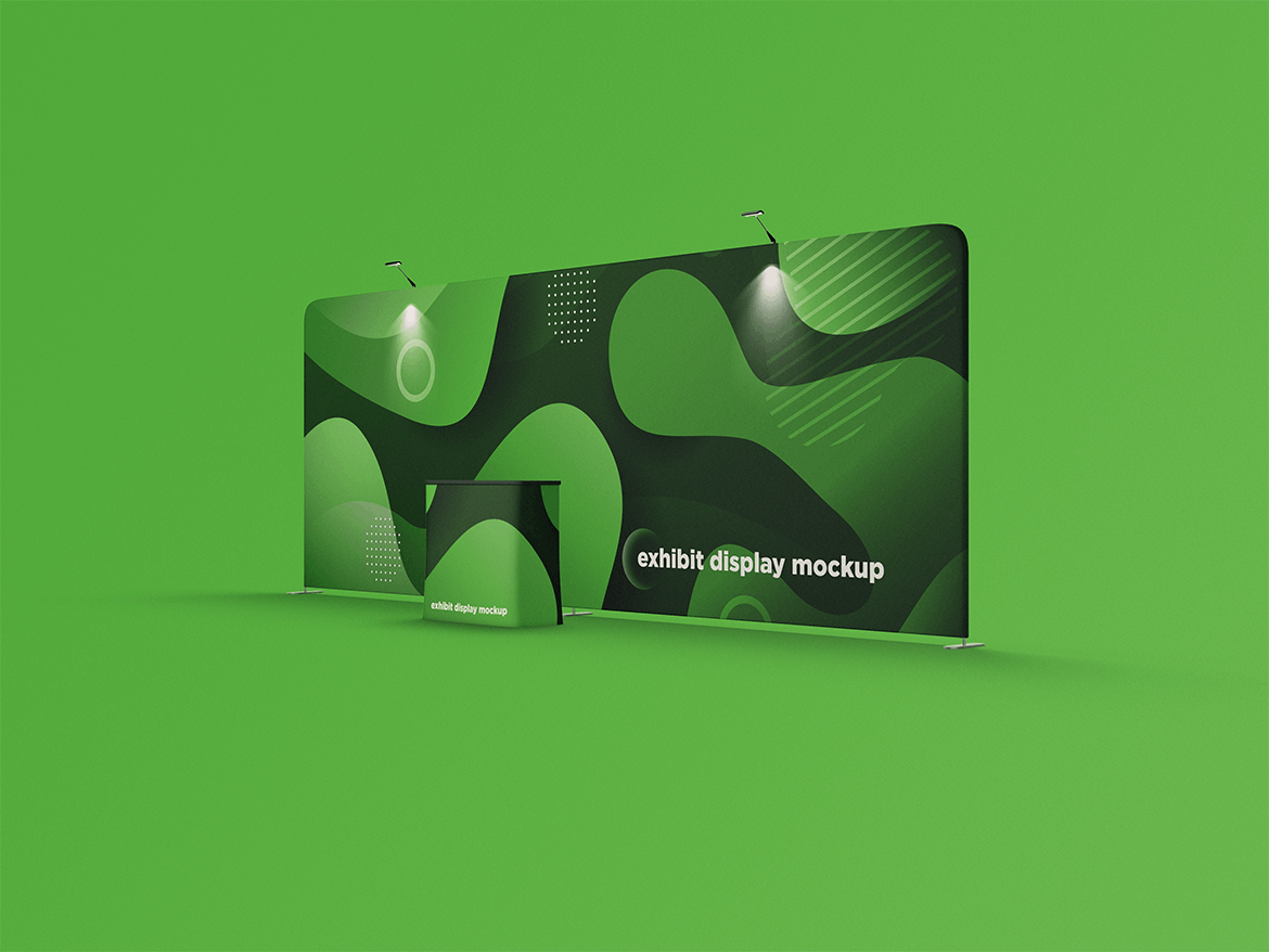 舞台展览展示样机,非常适合展示-设计。 简单的结构和通过智能对象的替换使您的工作更加轻松。此图像仅用于生成预览。 预览图像中的设计和字体仅用于演示目的,不包括在内。
