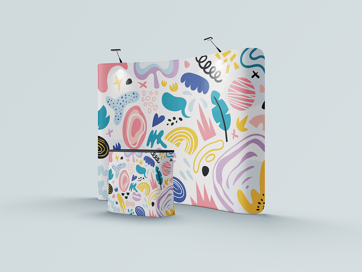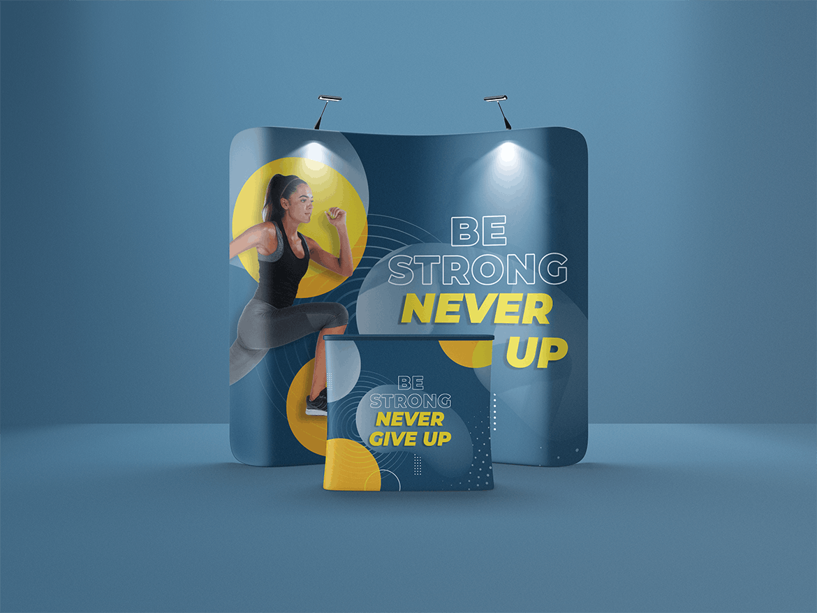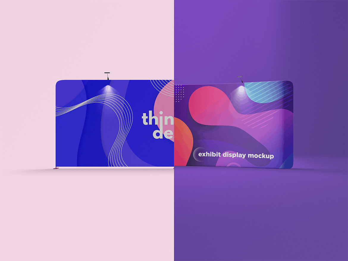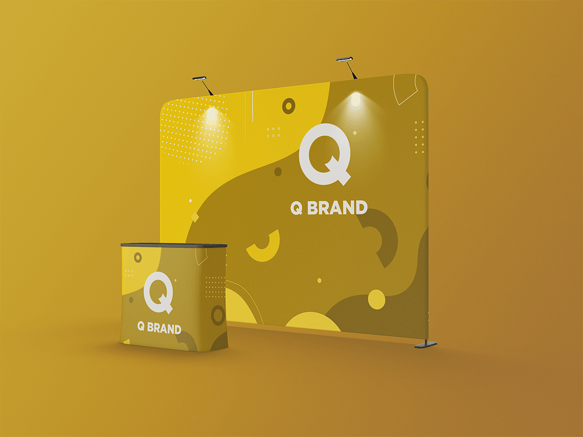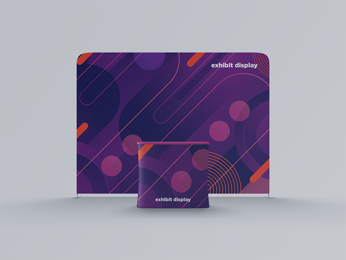 舞台展览展示样机,非常适合展示-设计。 简单的结构和通过智能对象的替换使您的工作更加轻松。此图像仅用于生成预览。 预览图像中的设计和字体仅用于演示目的,不包括在内。