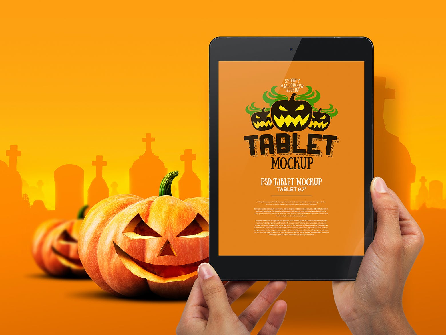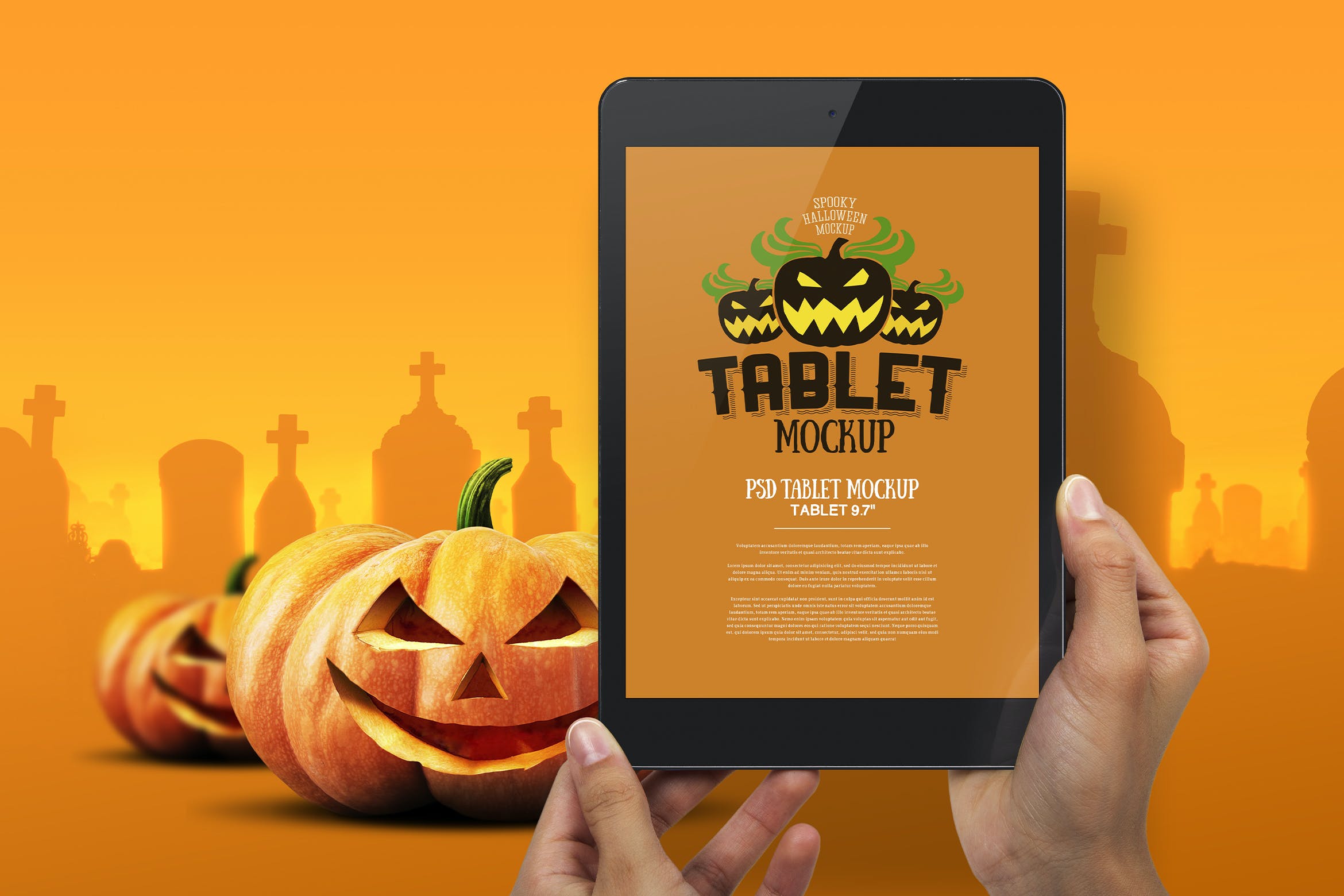 该高分辨率的南瓜头元素万圣节场景手持平板电脑样机模板将帮助您改善演示文稿或任何其他项目。在这里您可以找到高质量的图像,以高分辨率拍摄。所有对象、灯光和阴影都单独分开。通过智能对象可以轻松编辑iPad样机。它非常有用,优雅且易于应用。非常适合印刷和网页设计。用质量和美丽使您的顾客感到惊讶!