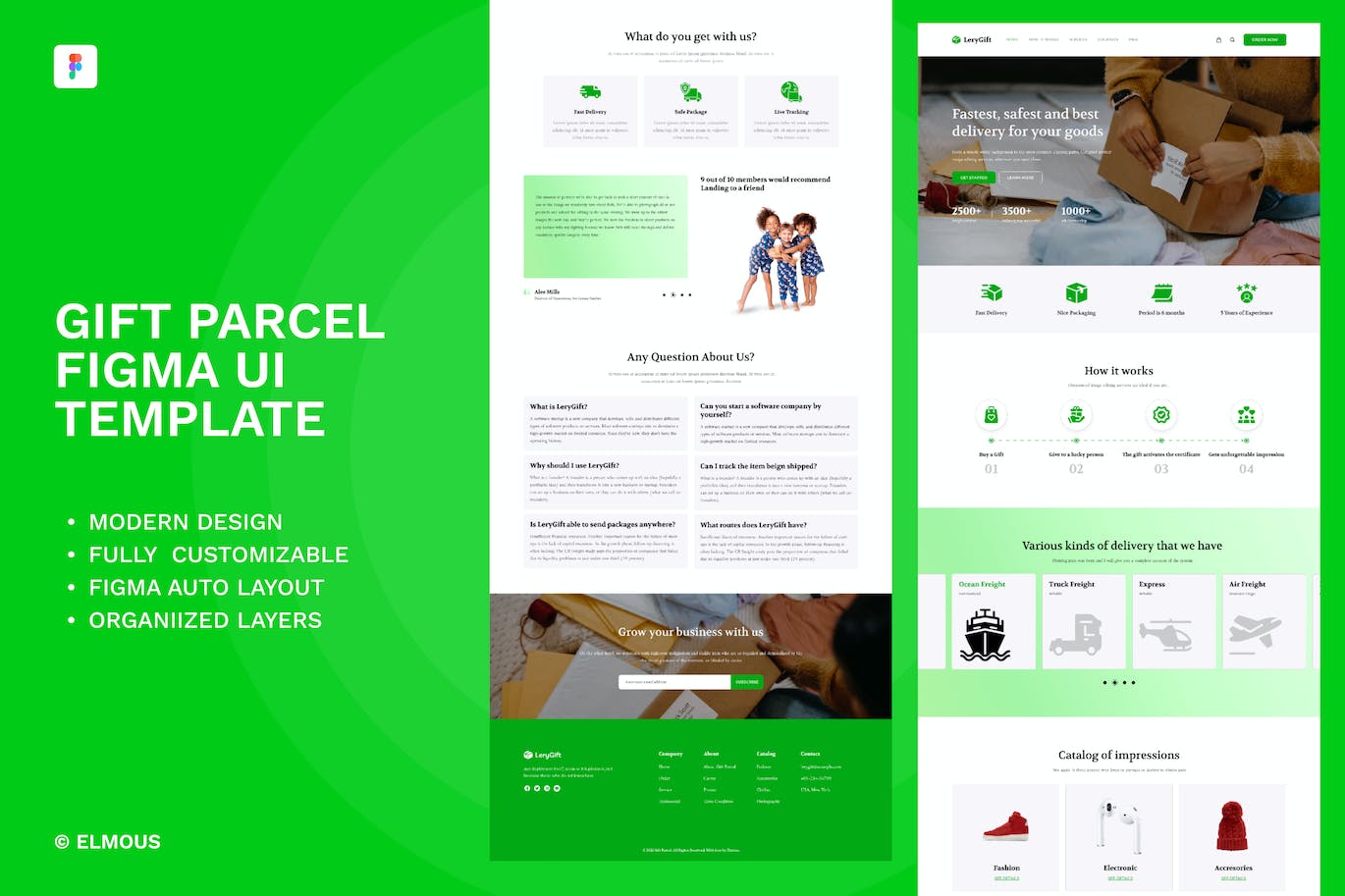 该礼品包Figma UI模板具有现代简约的风格。该概念易于编辑、自定义和调整大小,因为矢量形状和组织良好的图层。