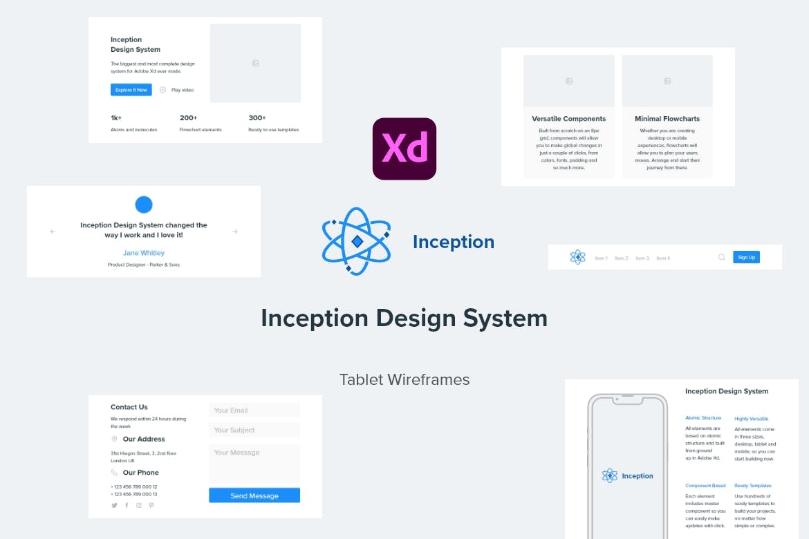 易于使用的Adobe Xd文件,内部具有完整组织的tablet线框元素库。