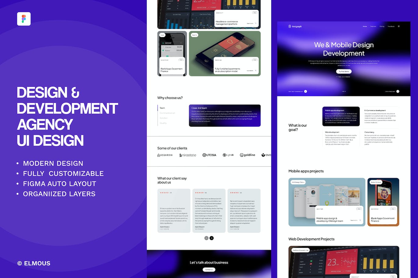 这种设计和开发UI设计具有现代和简约的风格。该概念易于编辑、自定义和调整大小,因为矢量形状和组织良好的图层。