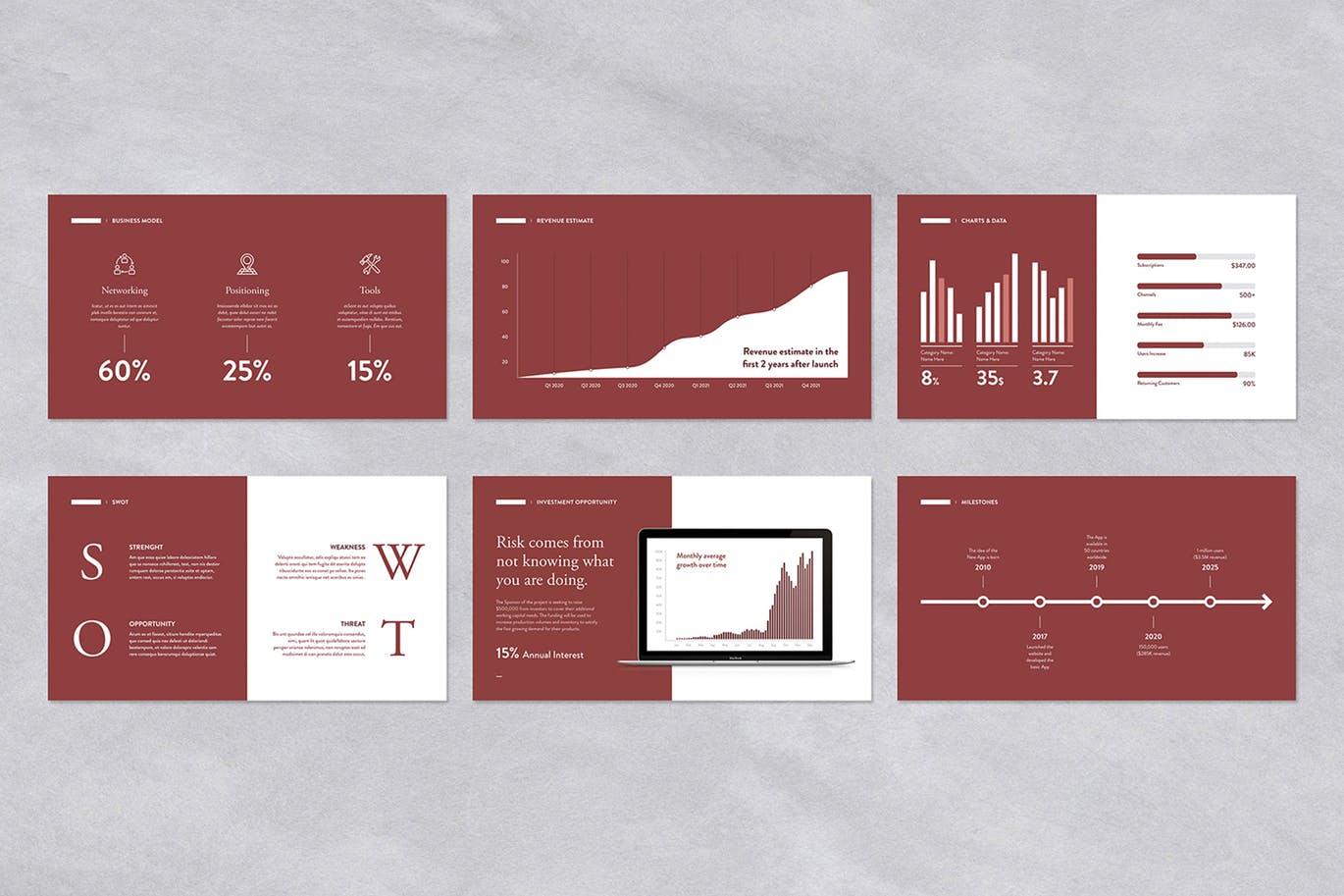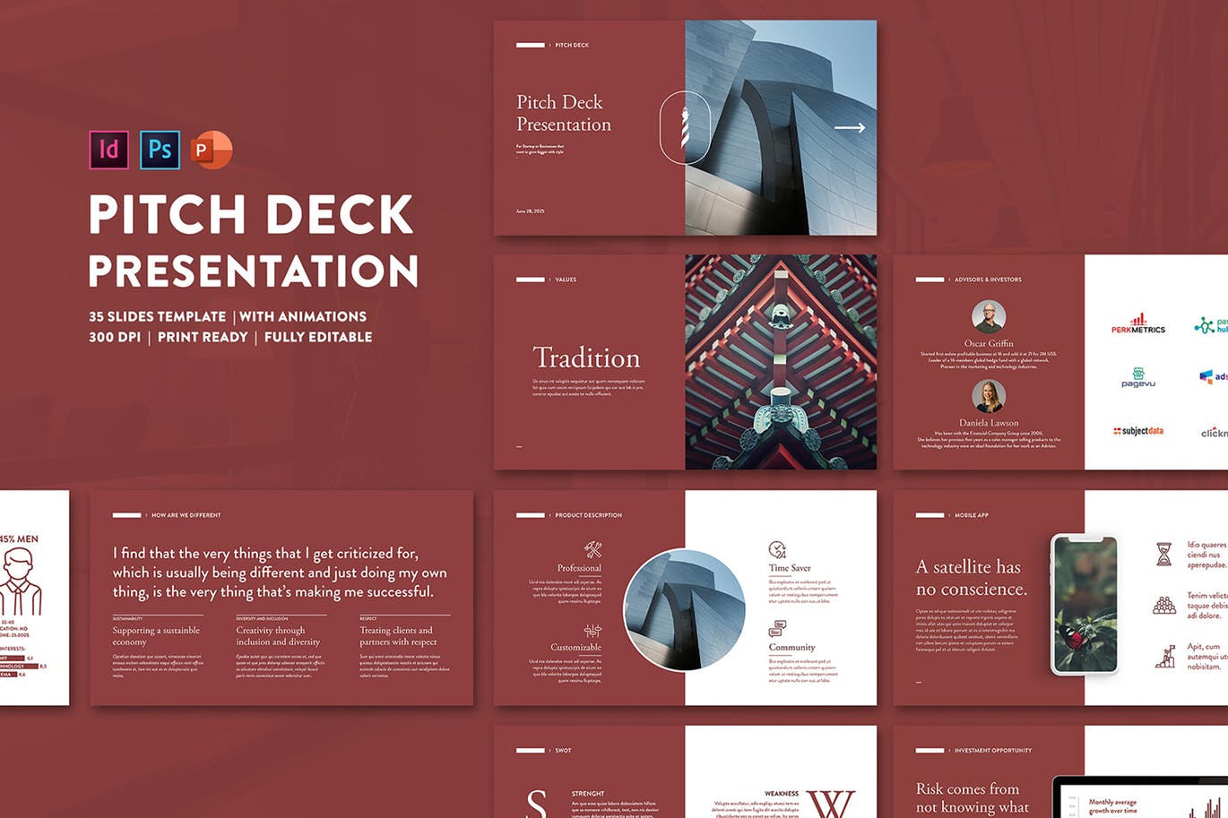 这是一个专业的35张幻灯片的沥青甲板演示模板,与专业幻灯片为您的业务演示设计。这个模板将有助于成功的创业者获得许多投资者,并有助于解释风险或商业理念的视觉吸引力的内容帮助。干净,现代和完全可定制,这种布局不限于一个单一的业务或主题,但可以用于不同的内容。创建这些文件的目的是为了让每个人都能使用,只要掌握Powerpoint或单个Adobe软件的基本知识。